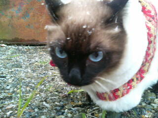 ☆初雪 降りました☆寒いけどベストのハーネスを着けてケープをまとう重装備でにわんぽに出かけました (庭を散歩=にわんぽ) 散歩だと喜んでいたチェリンが一変寒さのあまり、怒っています 草も少なくサラダは1口2口食べただけちょっと歩っただけで寒さに負けてチェリン自ら玄関に戻りました(^^)いつもは帰らないってダダこねるのに21日22日と人間ドッグに入ってきました胃カメラ初体験しました痛くはなかったですよ最初は楽勝って思っていましたが胃の奥を見るときは苦しかったですね他の何回も胃カメラをのまれた方が上手な先生だとおっしゃっていたのでラッキーだったかも昨日は人間ドッグ帰還祝いでチェリンパパがお土産を手に帰宅大きな敵!いつも言いますが二人暮らしですよ2週間後の結果が不安です糖尿があったらチェリンパパのせいです絶対!!追記しおさん、お誕生日おめでとうございますいい1年になるよう心から祈ってるよ