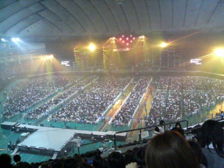 さあ、どこでしょう?東京ドームですバックステージ斜め後ろの席でした大阪の京セラドームに続いてキンキキッズのコンサートに行ってきました~!大阪は4時間やってたのに東京が3時間40分じゃないのーって、それでも十分長いよね歌あり踊りありトークありと言うこと無しです大満足♪アンコール2回もしてくれたし幸せな時間でした今年のライブ納めですなので、贅沢してお泊まりまでしちゃいましたそのホテルがGOOD東京ドームの後、泊まろうかと思う方は「ドーミーイン水道橋」がお勧めですリーズナブル・大浴場(小浴場かな)あり・朝食がおいしい3人で泊まったのですが1室3名朝食付きで一人6000円でしたお部屋は思ったより広くシングルベッド・セミダブル・畳3畳分くらいかな…とゆったりお部屋はバス・トイレ付きだけど地下に人工炭酸泉の大浴場が付いていますキーワード入れないと大浴場に入れなくなっていてセキュリティーは万全でしたチェリンパパとお留守番隊代表”ゆうか”体重測定中まるくなった?って思ったら思い過ごしじゃなかったUPしてました5.2kgさ~ママといっしょにダイエットしようね!