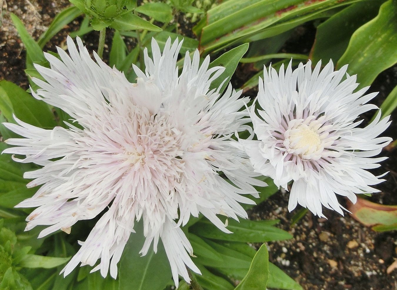 言われています。 花はヤグルマギクを大きくしたような感じで、青、紫、白、