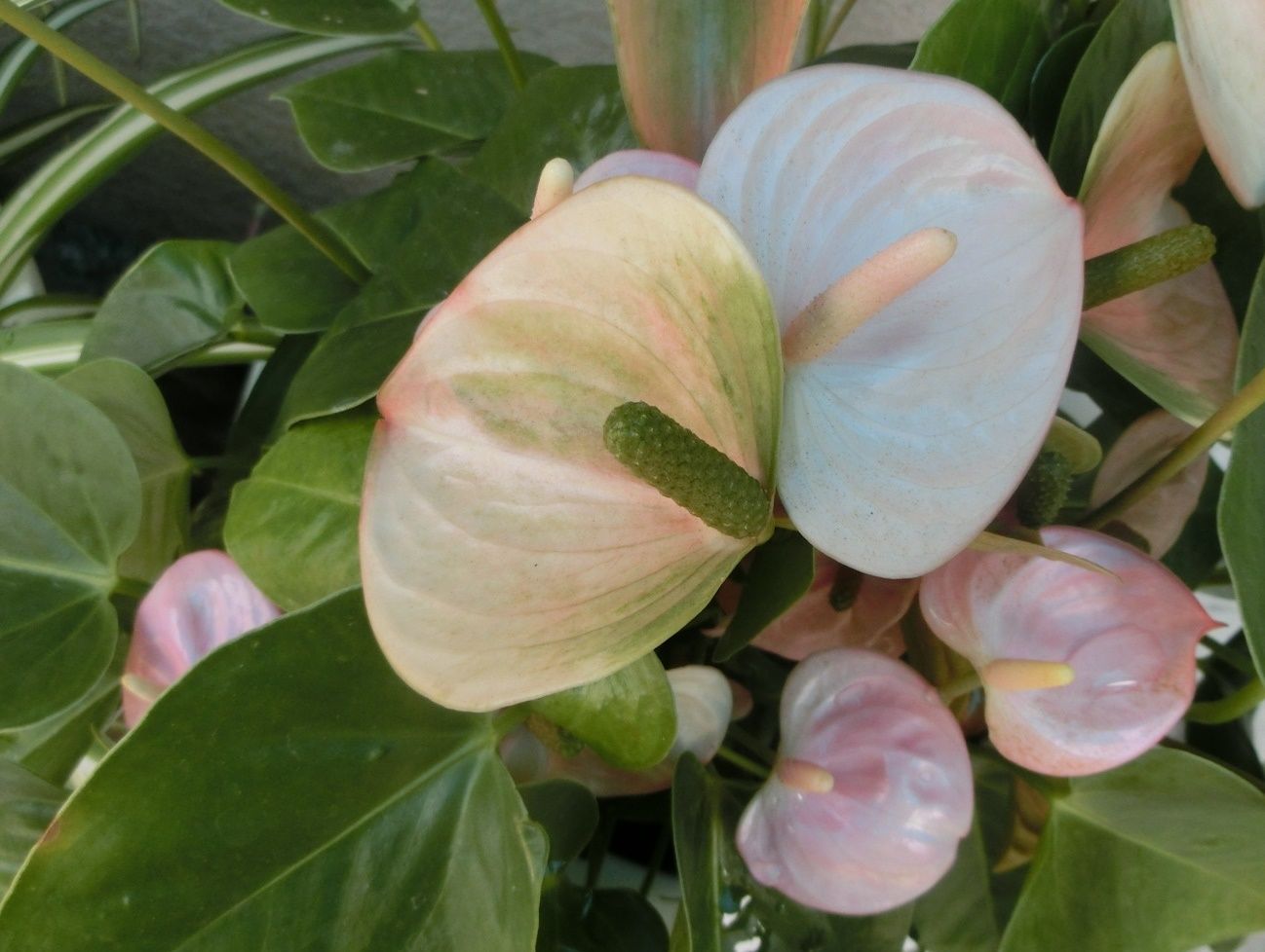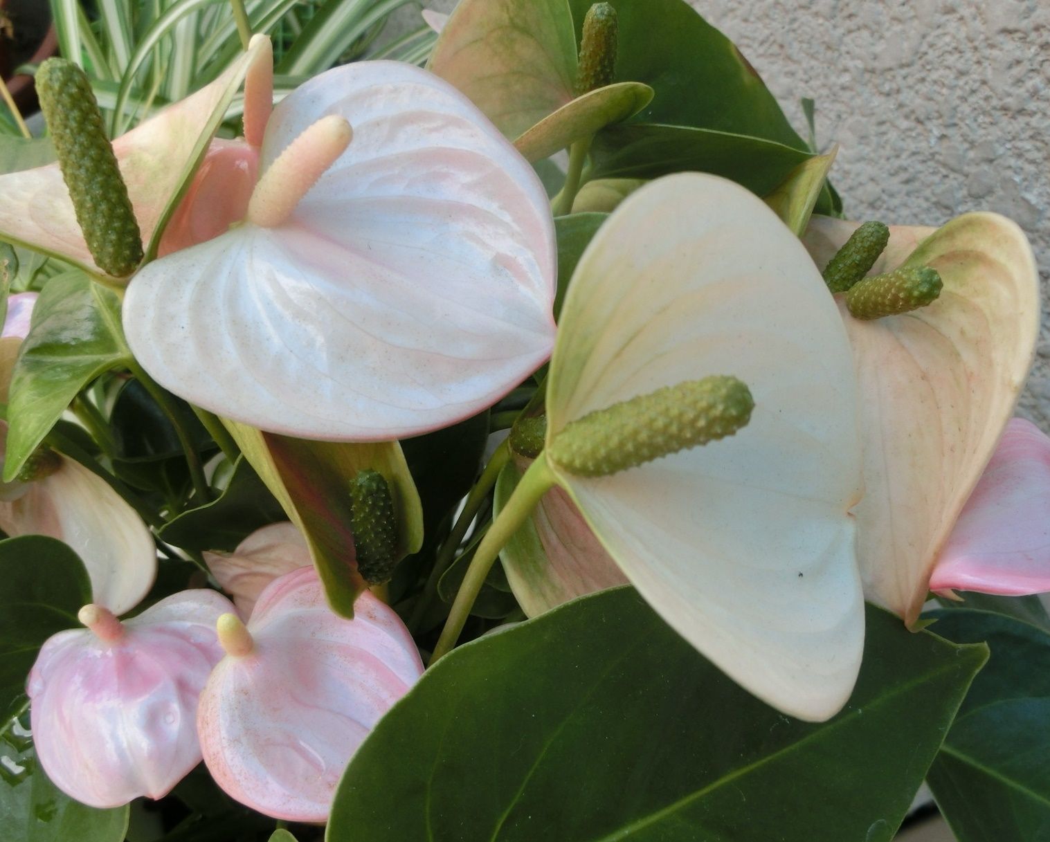 アンスリュームにも品種が色々、ポラリス(白)アリゾナ(赤)アミーゴ(赤に緑)