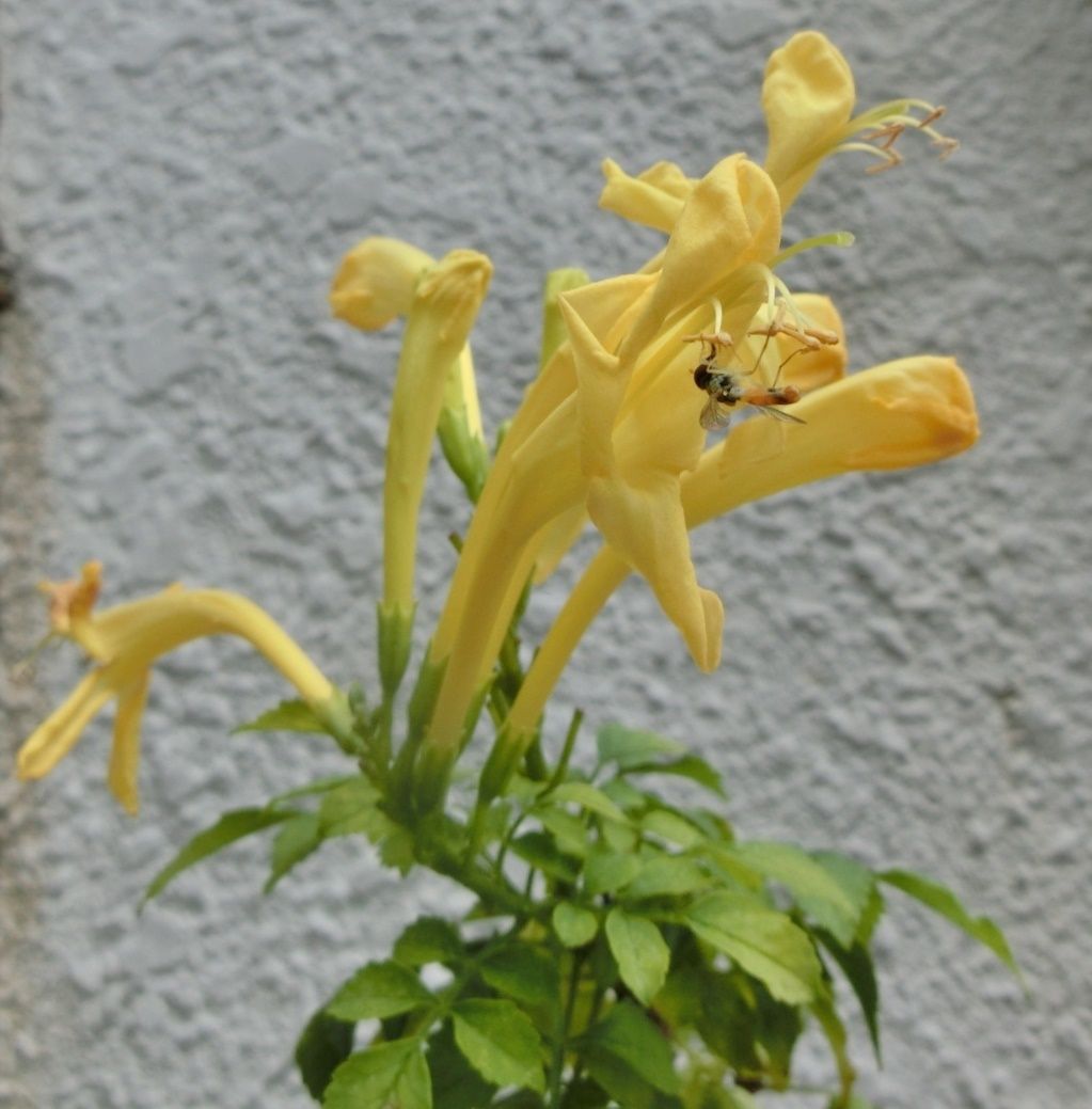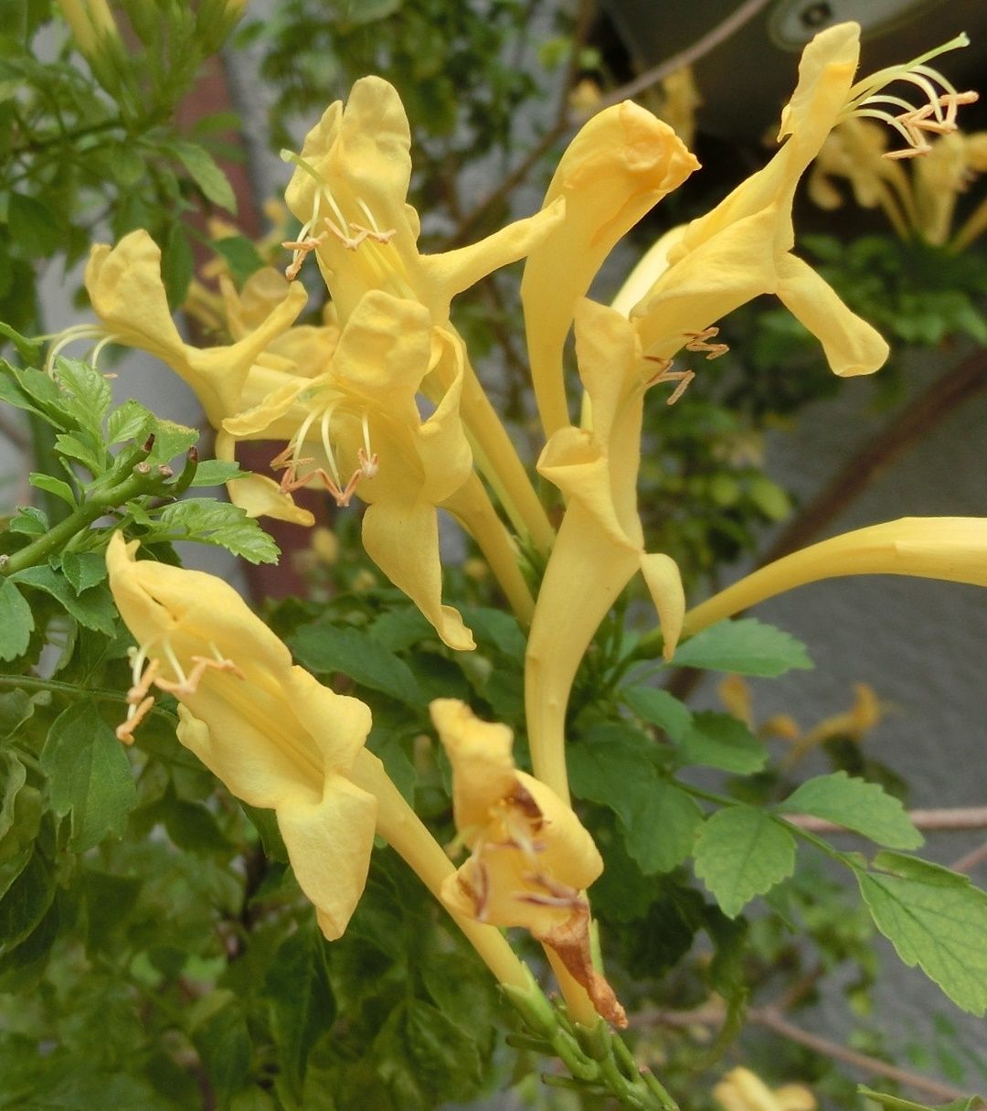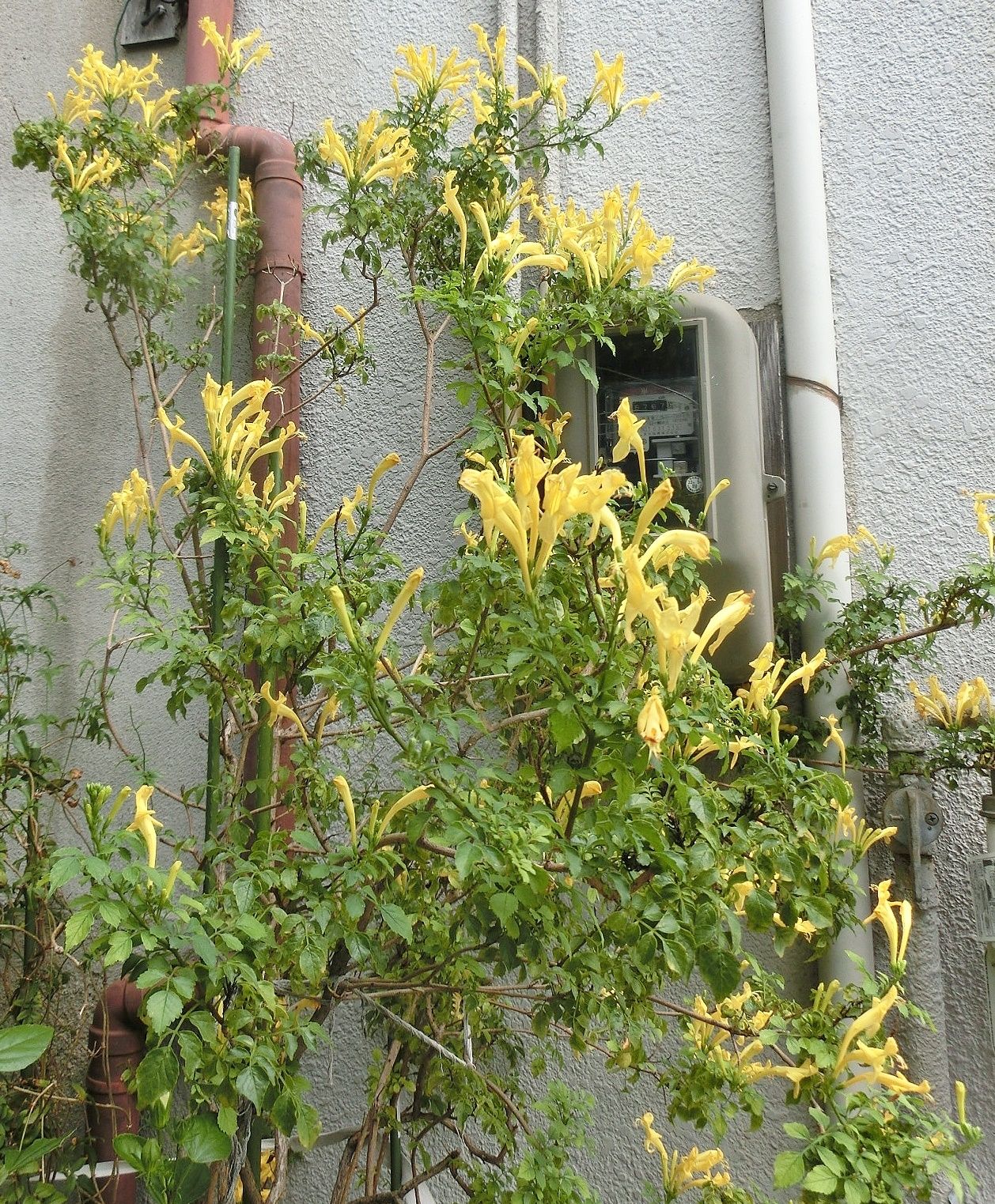 ノウゼンカズラに近い仲間です。 花期は夏から秋にかけて咲きますが、