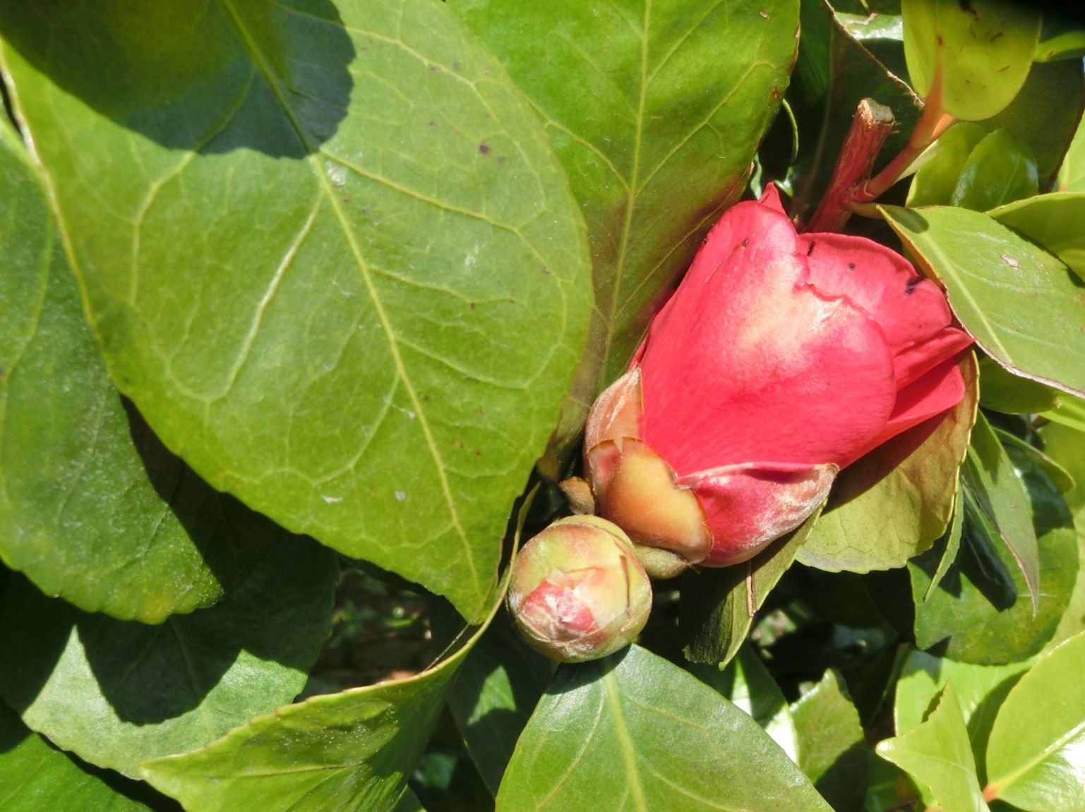 [名前の由来]・・葉に艶のある木、津葉木または厚葉木から転じたもので、椿という