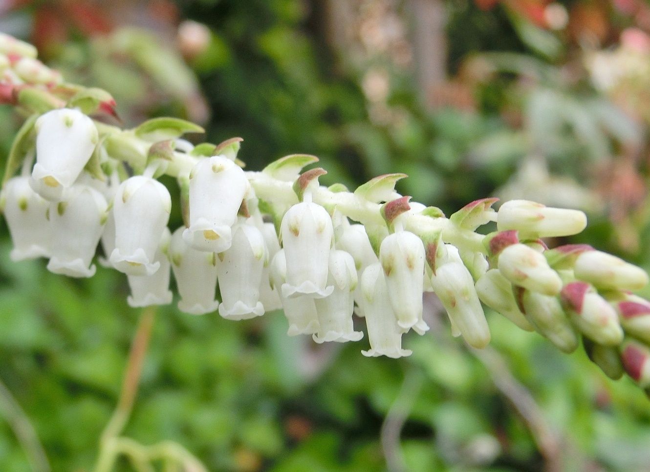4~6月に白い釣り鐘状の花を総状花序に一杯に付けます。