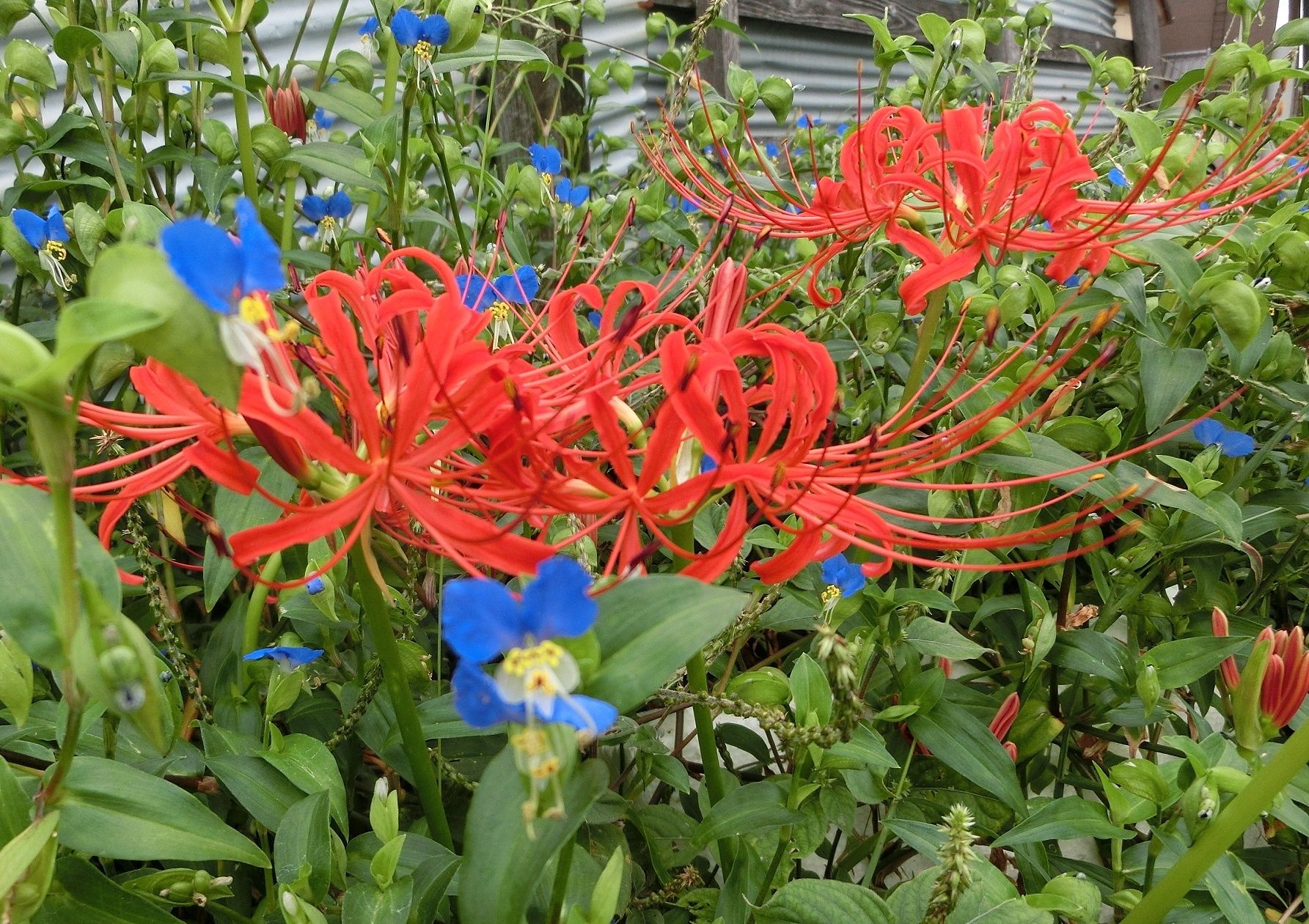 ヒガンバナと一緒に…  ツユクサ   ヤブラン