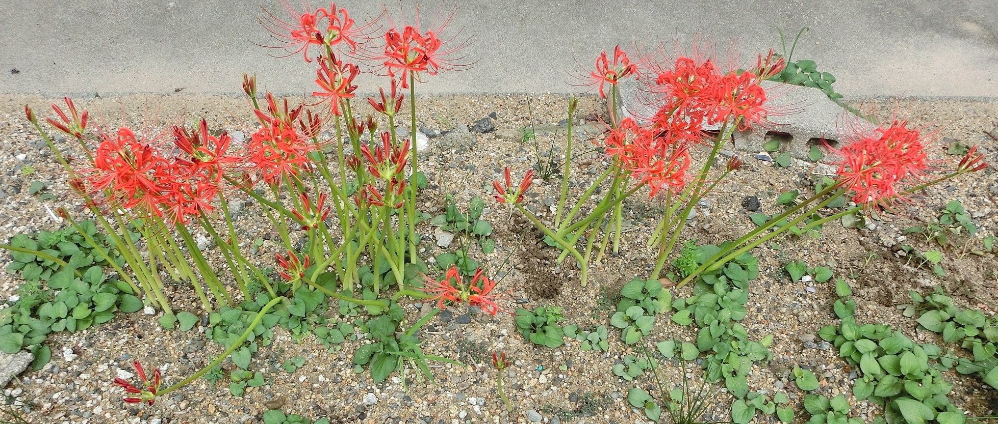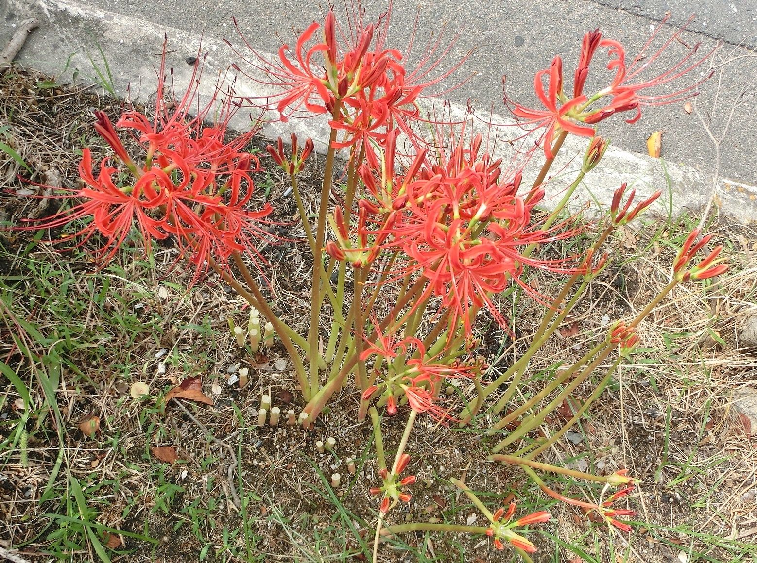 分布する球根植物です。 あまり馴染みがなさそうですが、秋に土手や畦で真っ赤な