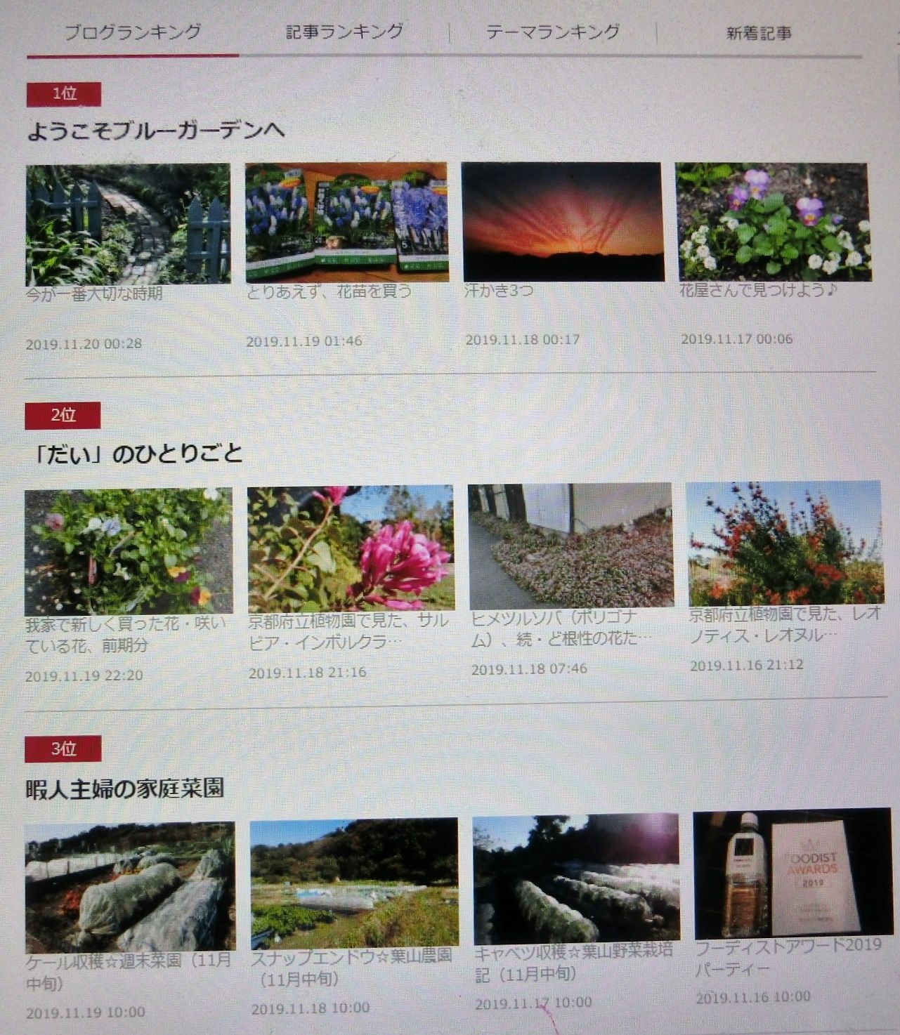 ひさひさぶりの 園芸アクセスランキング2位  11/16 (土) は・・・​ 3位