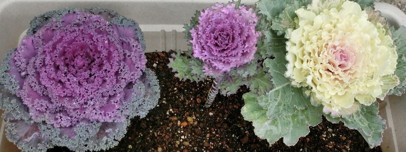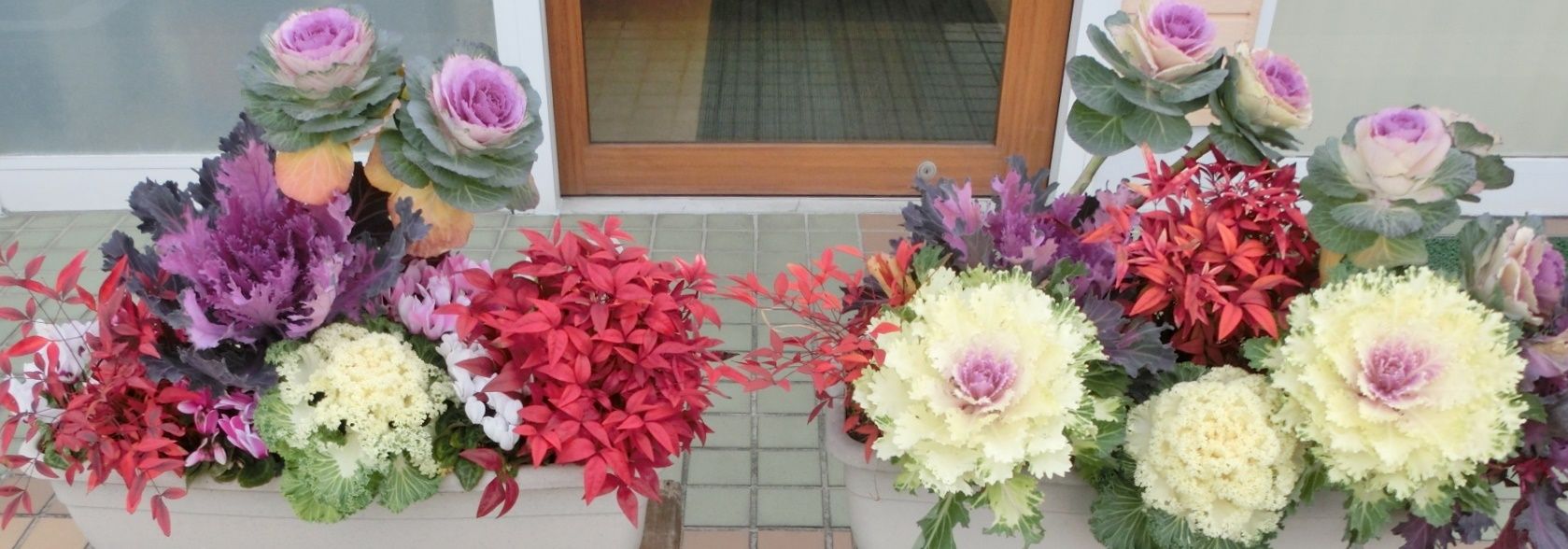 おどりハボタン寄せ植え・草姿も良くて、そのまま飾れて便利です!