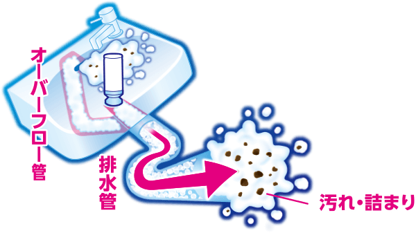 マッハ泡で汚れ・詰まりを押し流す、新発想の洗面台の排水管用洗浄剤。