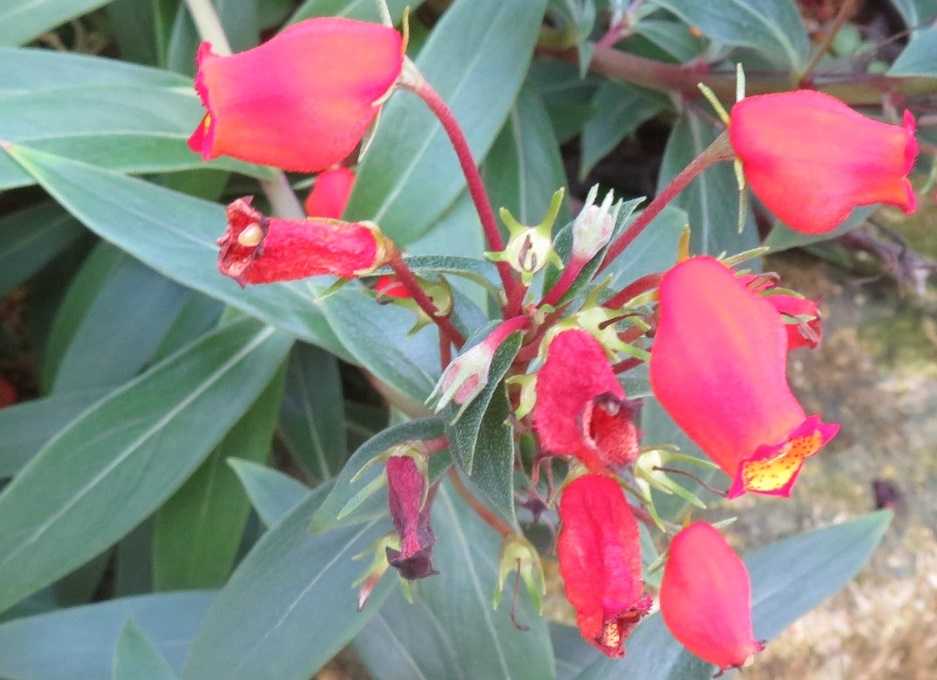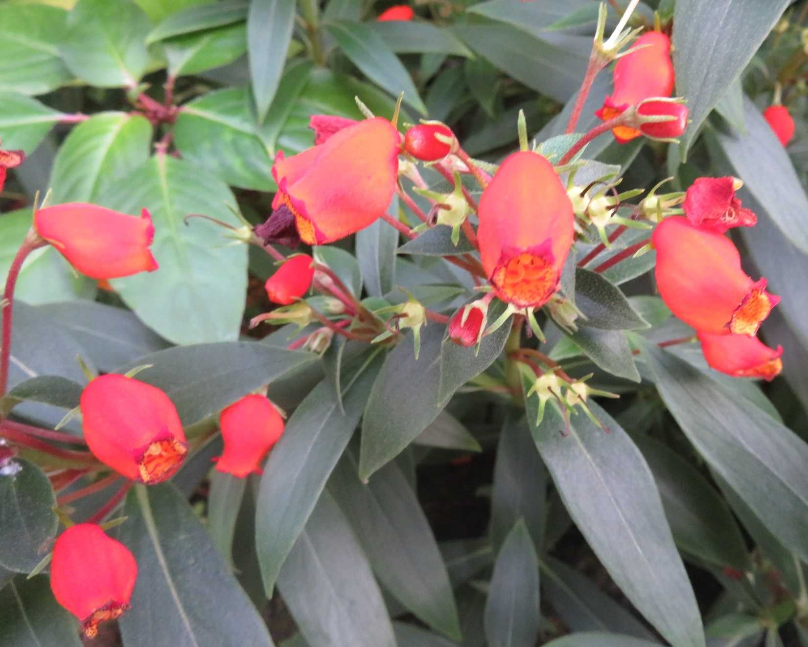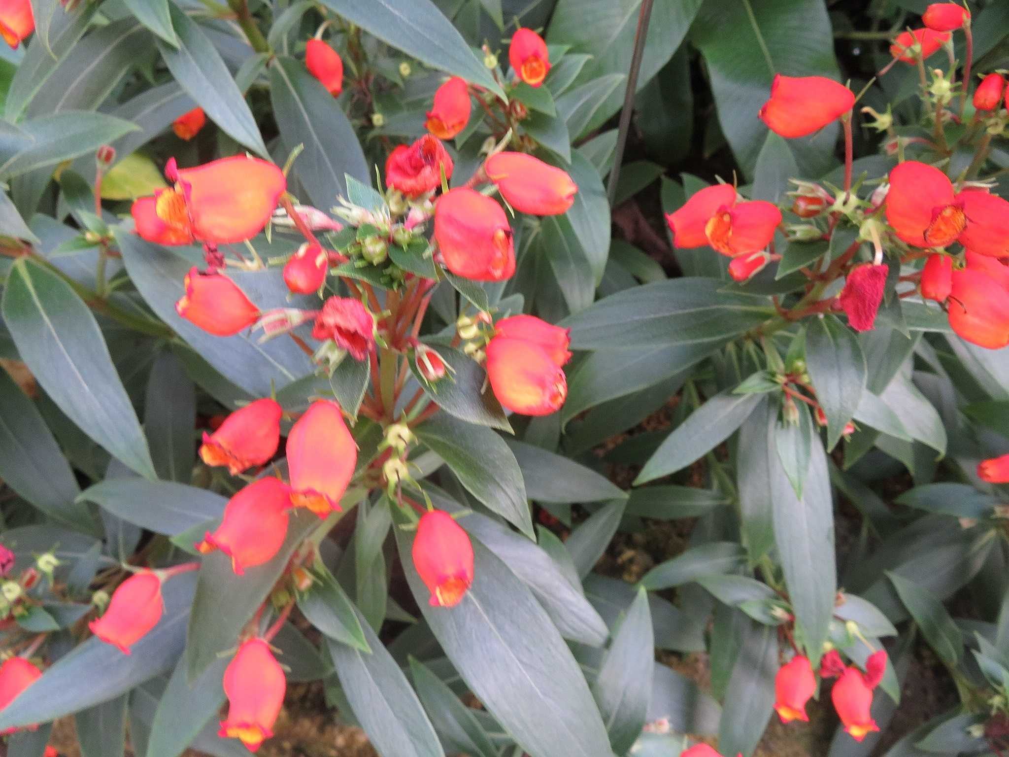 名前で通っている事が多いようです。 花は鮮やかなオレンジ色の袋状で、