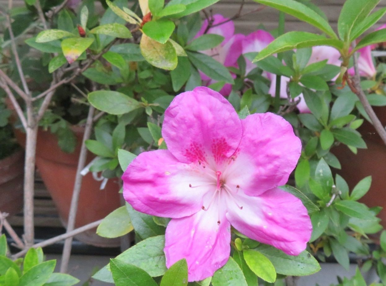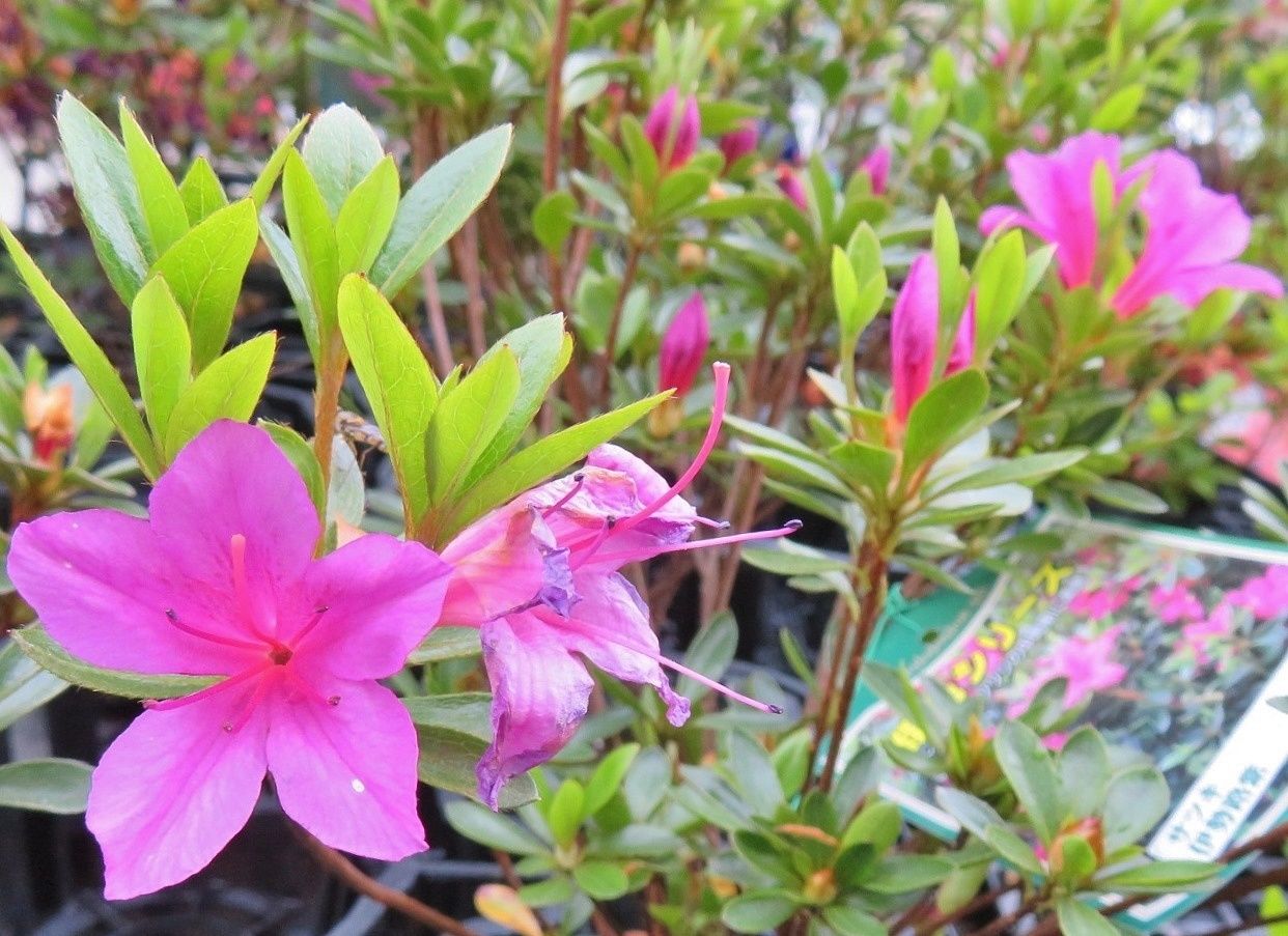 サツキは新芽が出てから花が咲きます。 また葉っぱが小さく花の色彩が豊富。