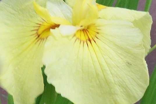 ハナショウブは 湿地に生え  花びらの中央部に黄色い筋があり花色が薄い