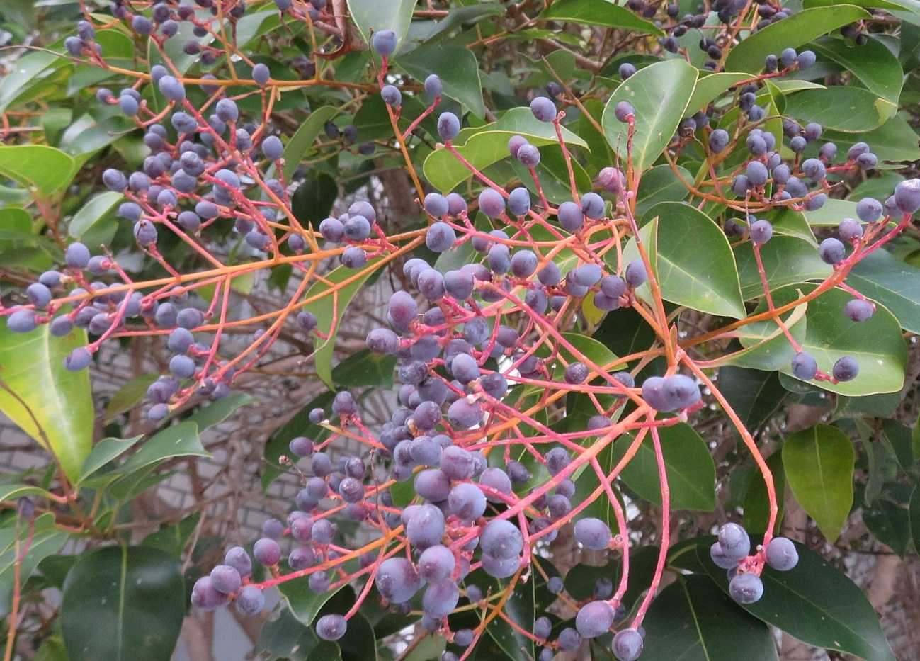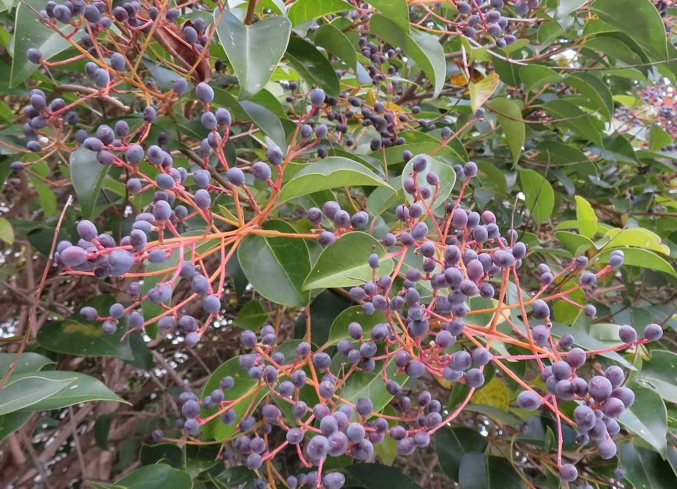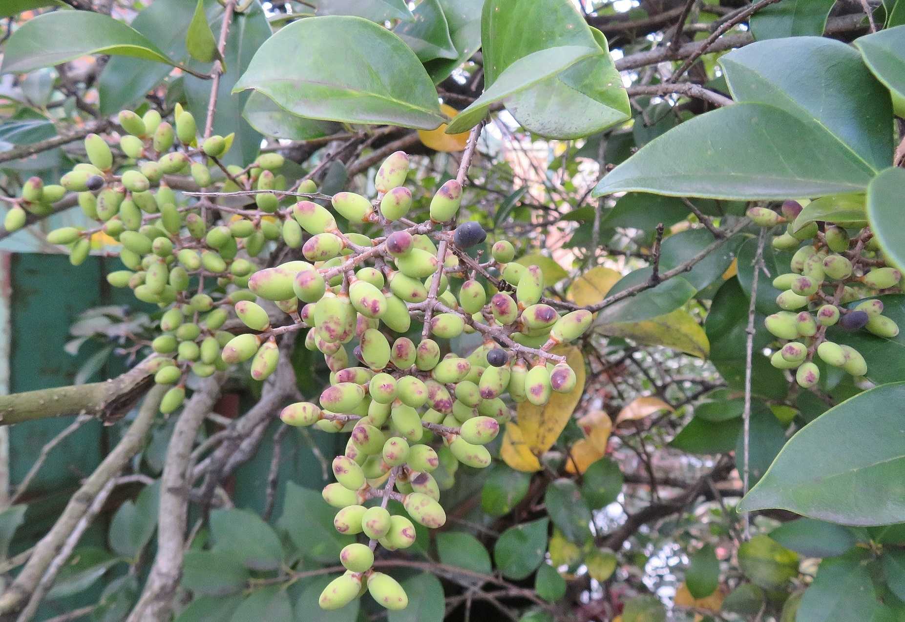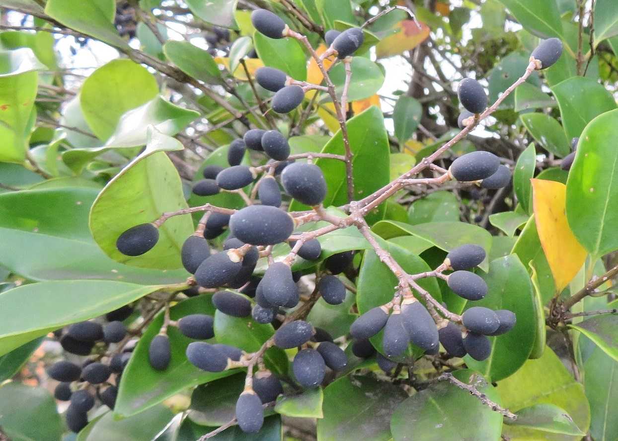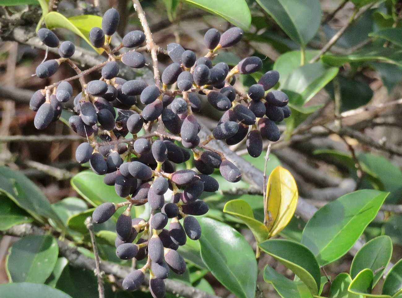 花や果実がネズミモチに比べて非常に多く、 果実は球形に近い!