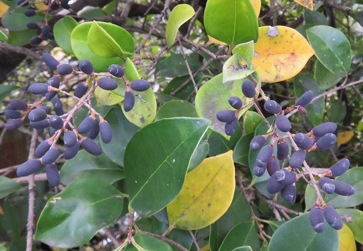 ネズミモチ………主脈が見えるものの側脈は見えず、 果実はやや細長く楕円形