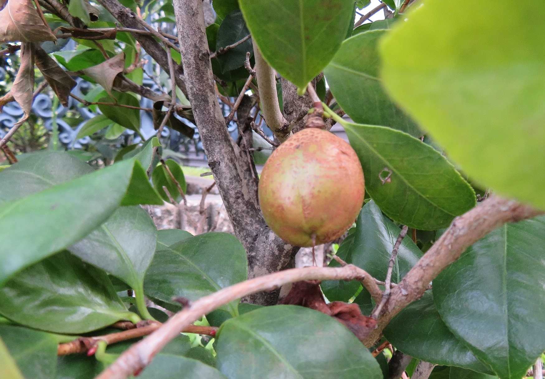 ツルツルで毛は生えていません。 実をつけたサザンカは10月頃に成熟し