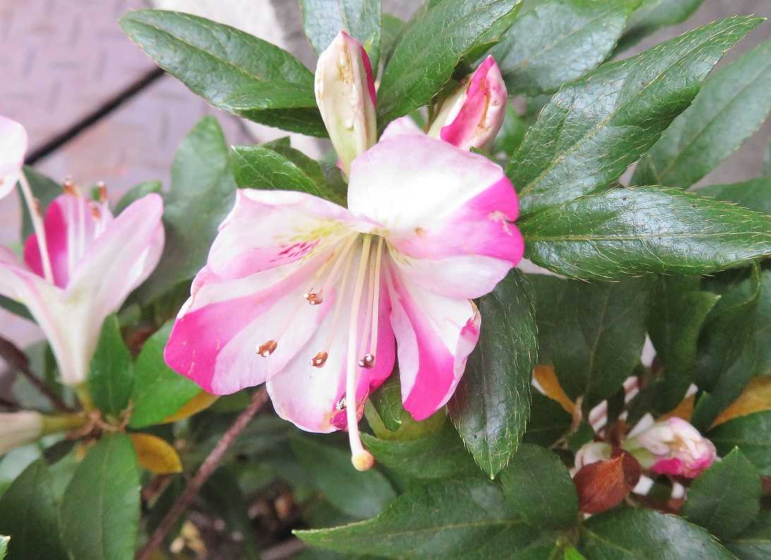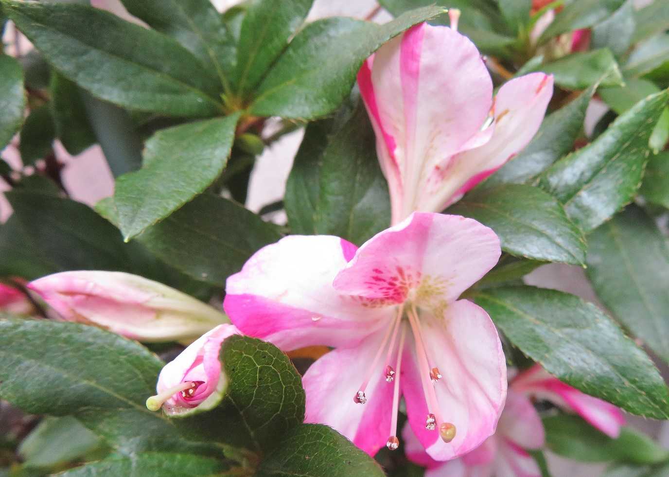 ツツジを交配して作り出した新品種。 サツキとツツジの中間期に開花する