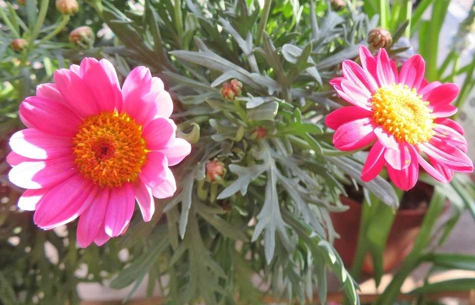 ピンクのぽんぽん咲きが可愛いマーガレット