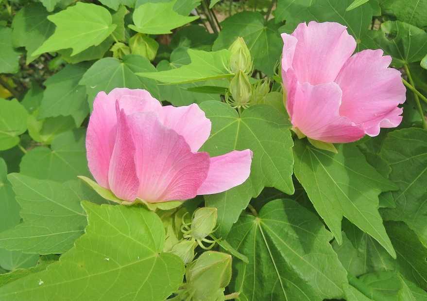 葉の形は掌状 (五角形~多角形)で 花柄が長い互生 ![]() |