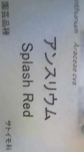 アンスリウム ・スプラッシュ・レッド  サトイモ科 ベニウチワ属