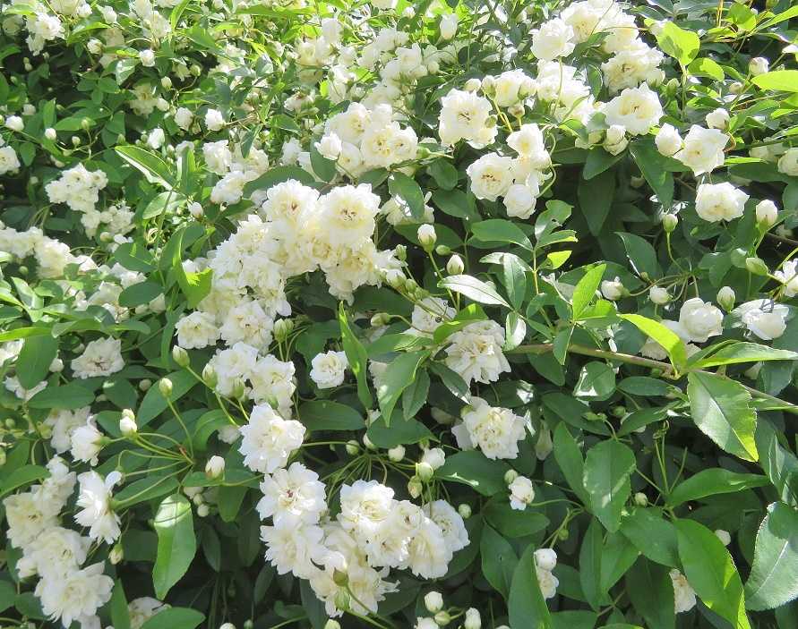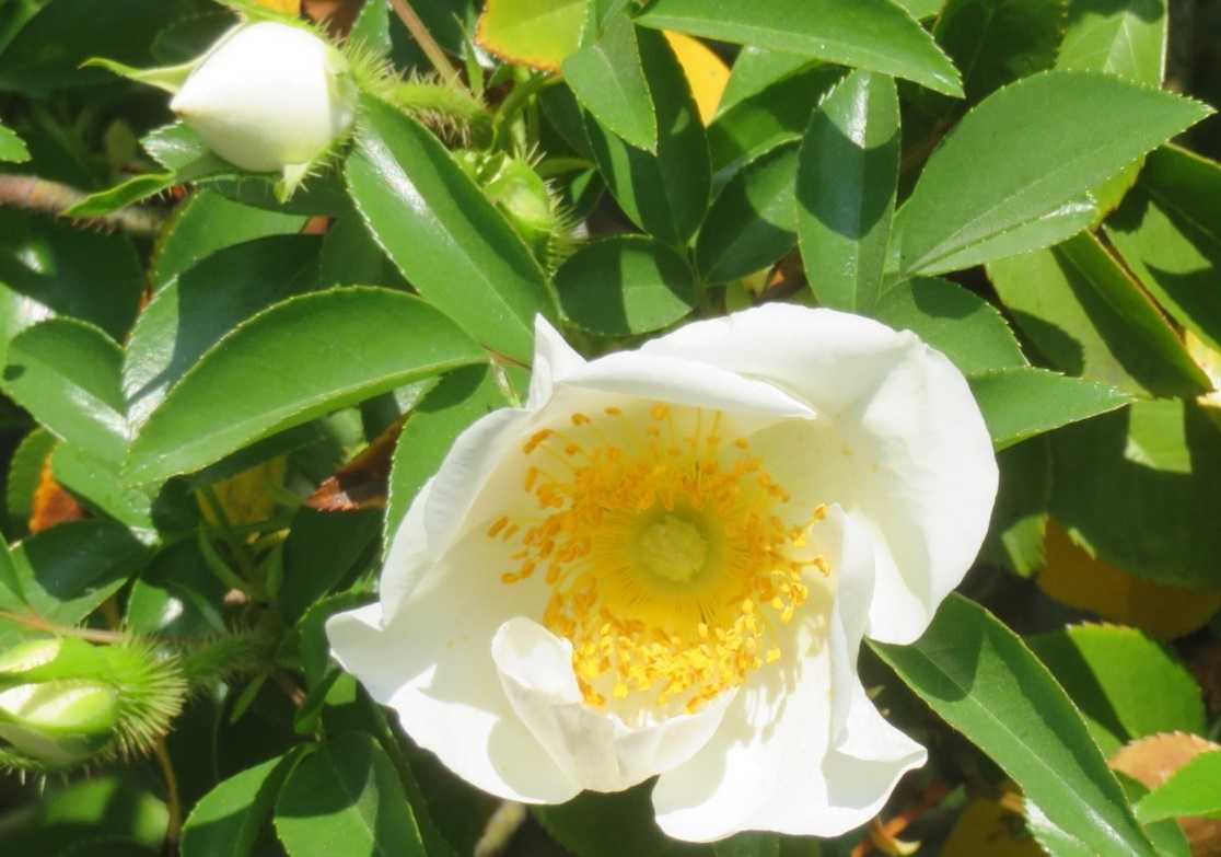 原種のバラのひとつで、香りのよい白の大きな花が咲かせ、とても丈夫な
