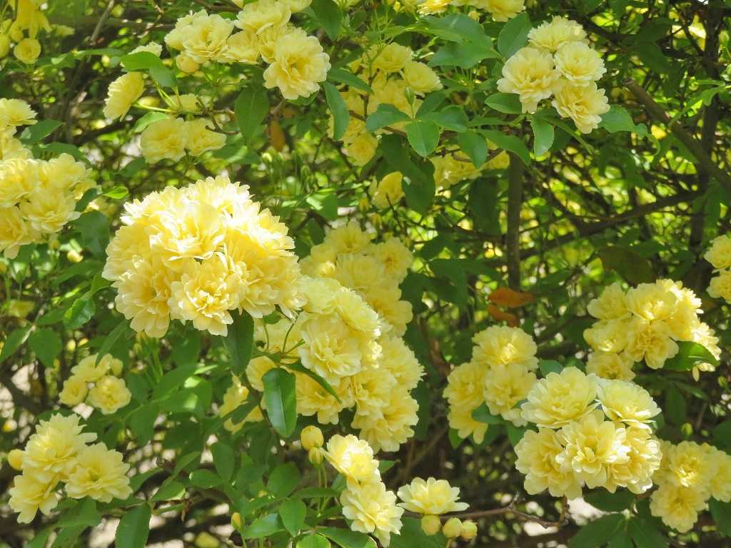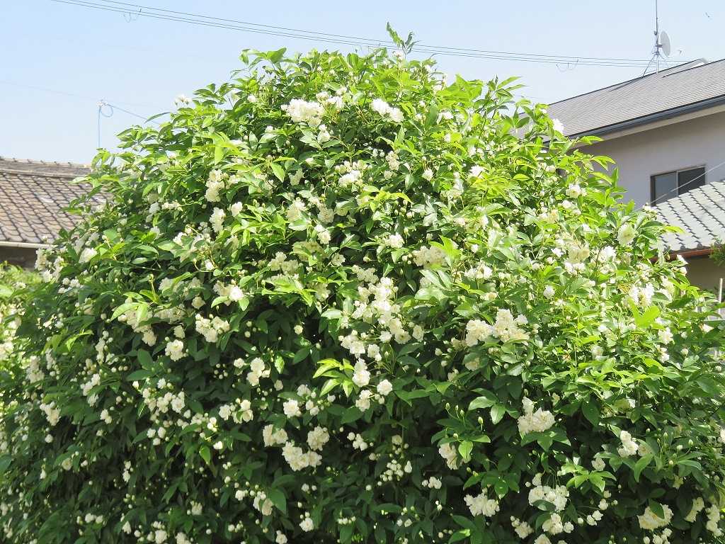 やさしい香りの小さな花を大量に咲かせる、中国原産のモッコウバラ。