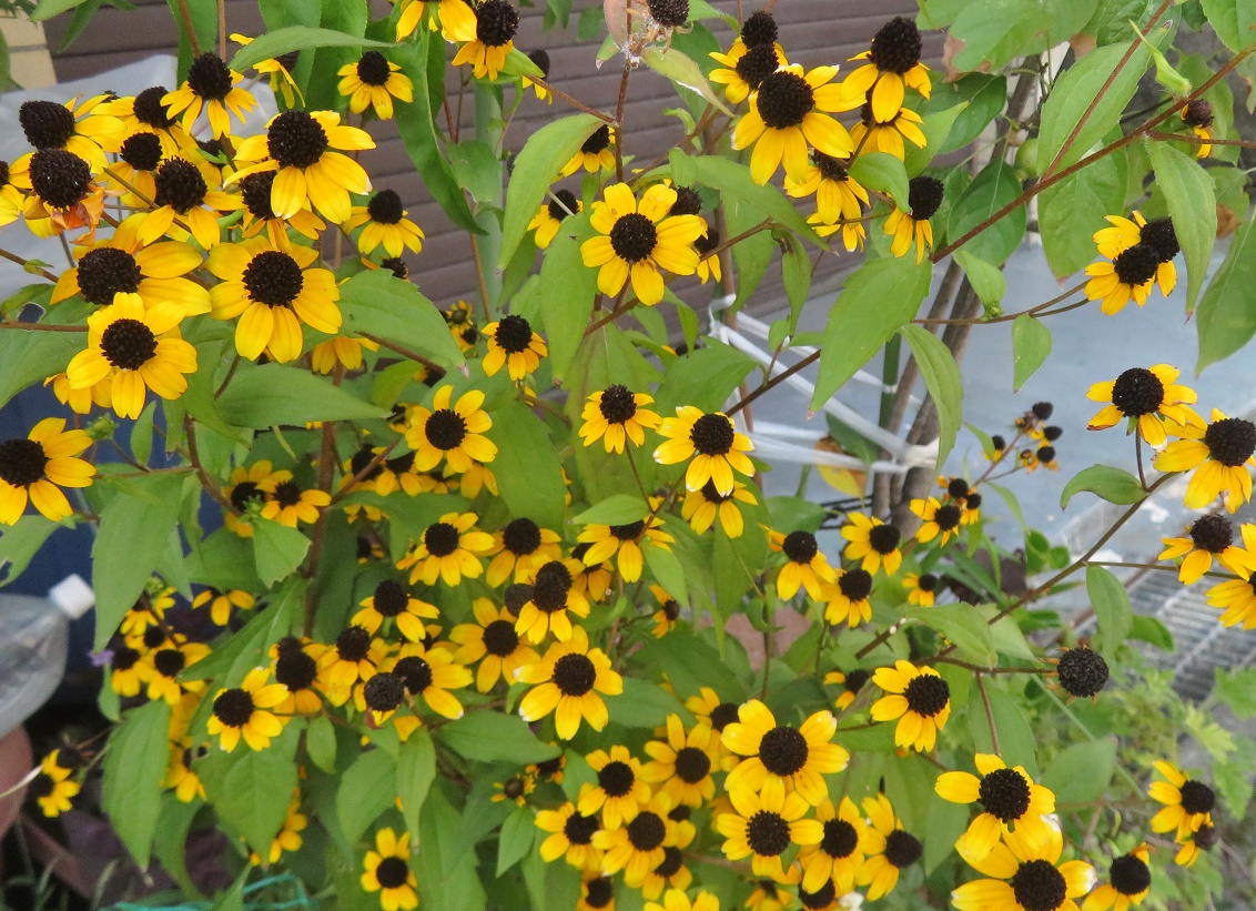 盛夏〜秋にかけて黒い花芯がよく目立つ黄色の小さめの花を たくさん咲かせ
