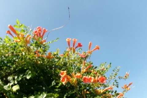 25/10/05(日)・・・ ベット上で洗髪! 花はアメリカノウゼンカズラ