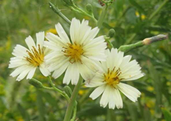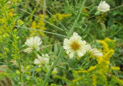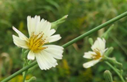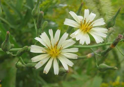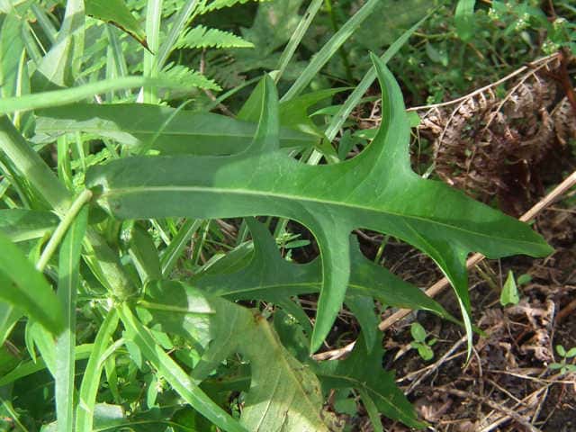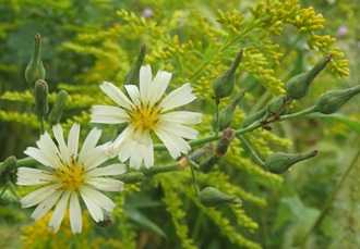 ホソバアキノノゲシは切れ込みのない 細い葉を 持ち(​ 詳しく! ​)
