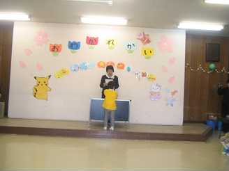 やっと子供達が待ちに待ったクリスマス会当日 (*´θ`*)私はクリスマス会委員だったので、じっくり見ることはできなかったけど子供達は大ハシャギでした~!クイズから始まり紙芝居・ゲーム・園児達のお芝居・お遊戯・最後にサンタさん登場!!サンタさん役はお借りしていた公民館の館長さんにやっていただきました♪お年を召した方なのでちょっと元気のないサンタさんだったけど、子供達には評判よかったですwサンタさんにプレゼントを貰い、写真を一緒に撮って、握手をしました★子供達も親達もとっても楽しく過ごした1日でした(●^o^●)