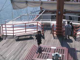 今日は息子の誕生日♪めでたいめでたい(≧▽≦)昨日からじっくり考えて、海遊館に行くことに決定★朝から準備バッチシ整え、いざ出発~|彡.。.:*・゜バビュゥン=3ちょくちょく海遊館に行くんだけど、高いのでメインの海遊館には行かず、船にも乗らず、近くのマーケットプレイスでお買い物とかブラブラするばかり(不憫な息子よ・・・)「今日は好きなことしていいよ」と言われ興奮ぎみのあきら君。まずは海見ながらの朝食♪んまっ♪♪近寄って来る大きな船に晶大喜び★船に乗りたいと言うのでチケットを買っていざ出航~~~♪天気も良く、ビュンビュン走る船。風が心地いいです♪船の先端に行きたいということで次男の手をつなぎ先端に到着。船の先端にきたらお決まりのあのポーズ!はい!息子と2人でタイタニックしましたよ!ァヒャ 。゚(ノ∀`゚*)゚。ァヒャヒャバカ親子ですが本人達はとても気持ちよかったです(笑)次は海遊館★大好きなお魚いっぱいでとても楽しそう♪入り口の所がトンネルみたいになっててそこで魚達が沢山泳いでいます。中にはエイまでいました!「大きい~!シッポ長~い!」息子はエイがおきに入りになった様です♪ 「エイ笑ってるよ~ママ~!」 「んなアホなw」(゚Д゚ノ)ノビクッッッ!! 「マジで笑ってる!エイって裏から見ると笑ってる!!」ビックリ発見でした。。。さて次は動物ふれあいランドに行きました。次男がまだ小さいので動物怖がるかな?と思っていたのですがこれがなかなか平気だったようでw大きな犬にも平気で頭ナデナデ♪↑の白い犬はとてもおとなしく頭ナデナデしてもシッポつかんでも怒らないやさしい犬でした。部屋の端でずっとゴロゴロしています。次男が何を思ったか、 いきなり犬の鼻に蹴りを入れた!!うわ!コヤツはいきなり何すんねん!犬は体の先端をデコピンされるだけでも相当痛いと本で読んだことがある。。それを蹴りとな!?さすがに犬も怒るかと重いきや、犬動じず・・・・!!あんたって犬は~!なんておとなしい犬なんだ~( ┰_┰) あんたは犬の鏡や!ふれあいパークの動物の鏡や~号(┳◇┳)泣犬に感激しながら次男の将来が不安になる今日この頃。。。。とにかく今日はよく食べ・よく遊び・よく歩いた1日でした=~♪帰って昨日作って置いた手ずくりケーキを食べて爆睡しました♪