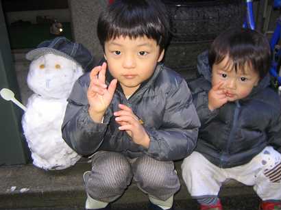 なんと珍しく大阪に雪が積もりました~~!大阪に振ることさえ珍しいのに積もるなんて!!各地でものすごい大雪で大変そうでした。死人まで出てるけれども単純に大阪に降ったのは嬉しい!雪が溶けてしまわないうちに早急に2人の息子を完全防着させて、雪遊びに出かけました(●^o^●) やっぱり大道は雪だるまということでさっそく開始!手が冷た~~~~!でもなんとか完成しました。何年ぶりかの雪遊びを堪能した1日でした(●^o^●)