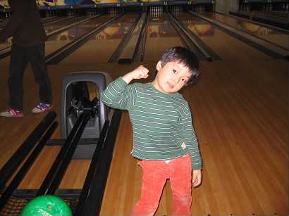 今日は兄がボーリングに連れて行ってくれました。40本のハンデをつけてもらい、1本あたり30円でお金をかけて勝負!あきらはガーター防止をつけてもらっていざ開始~~!4回投げたときには、すでに30本差がでておりました(TOT)しかも息子にまで負けてる私って・・・・><でも後半ストライクをがんばって出しなかなかの奮闘!でも結局負けた・・・今日の被害総額380円なり・・・・・・。