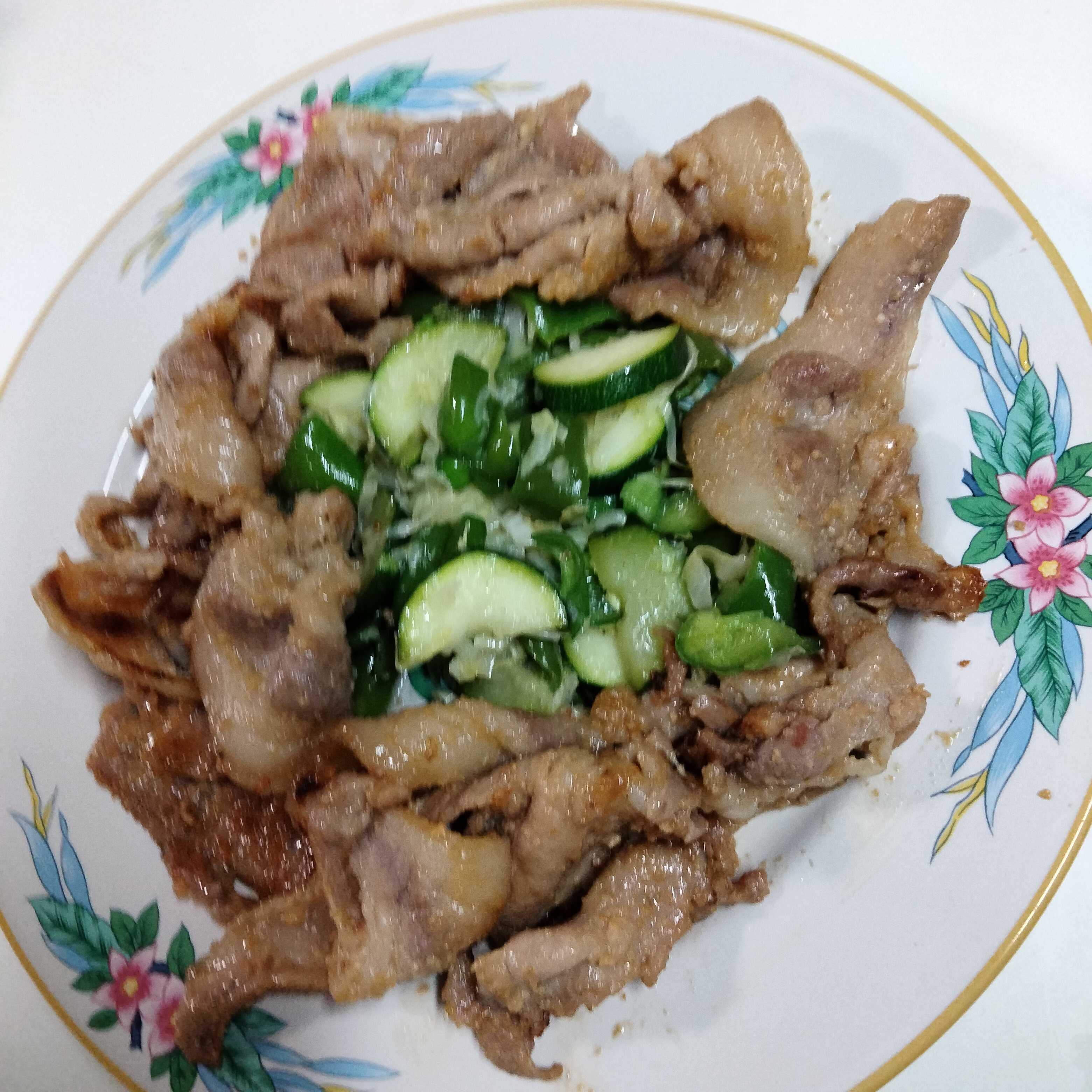この頃何でも高いから豚が多いです〜普通なら千切りのキャベツかな?豚肉の生姜焼き