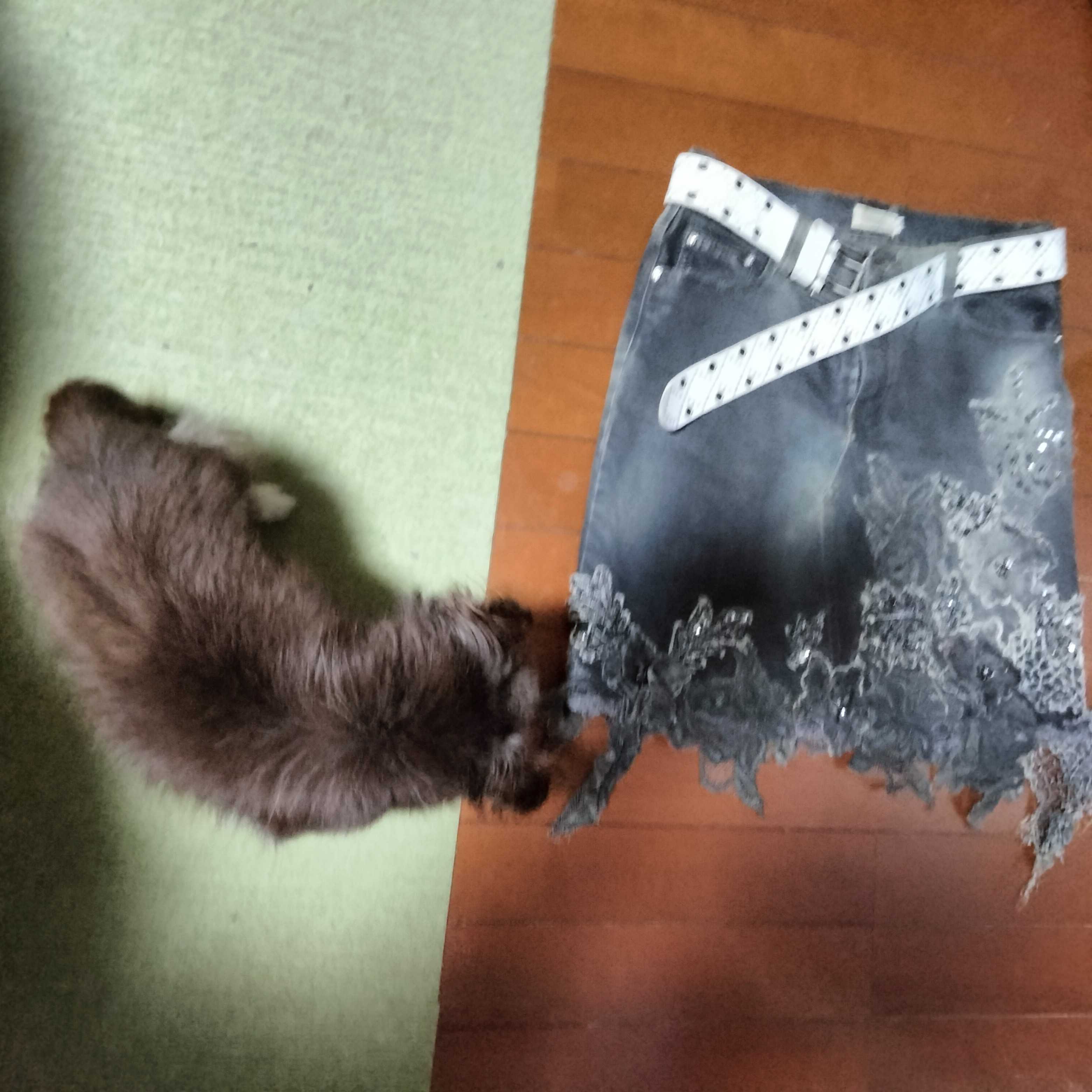 さすがにミニスカートは捨てようと思ったけどバッグにしました〜赤いところは帯でも帯は硬いかはミシン使うのが大変だねスカートをバッグに