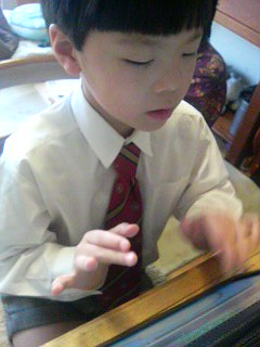 レオ君近頃 字がかけるようになって家族のスケジュール表にかくかく昨年あたりは枠なんかきにせずはみだしOK文章も下から斜めからなんでも書きたい放題今年は 大人になったのかはみ出さずに普通になってきたぞ表現会リハーサルリハーサルと書くとおねいちゃんの欄にはみ出すがどうすればいいのかときくり にしとけば・・・納得なだか大人に感化されておもしろくないなまあ 集団組織で仲良くやるにはいいのだがなんだが個性がなくなっていくのがちと寂しいなああっしなんかは グラスをひっかけてスケジュール表がびしょ濡れになりますな幸い赤ワインの時がここんとこ少ないんで乾けば問題ないですな