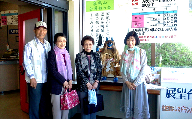 ■ 過日、晴天の日!・・姉たち(写真)を乗せ!男鹿半島・・・寒風山へドライブに行ってまいりました。 回転展望台から見る「大潟村」は、田植えも終わりその冠水の様は・・快晴が反射し輝いて見えた。■ 久しぶりに見る!展望台内の「八郎潟干拓とその歴史」は、以前の記憶も薄れ!・・・感動の縮図!・・・・・ 頂上付近のなだらかな斜面から、カラフルな色彩の!・・・ブーメラン形パラシュートで滑空!・・・・・ パラグライダーの愛好者たちが集い!見事な演舞・・・。■ 日本海が輝き、男鹿半島の山々が緑に染まり、鳥海山はどこまでも優しく!・・・南の空に立ち開(はだ)かる!・・・・・ そして、うす墨を投じた水墨画でも観るような!奥羽山系の山々が!・・・・・ 秋田の広さ、ひとの心の深さを演出してくれる・・・。■ 姉たちも、今更ながらの感動、感嘆の声しきり!・・同行小弟としては、只只両姉のご健勝を祈るのみ!・・・・・。