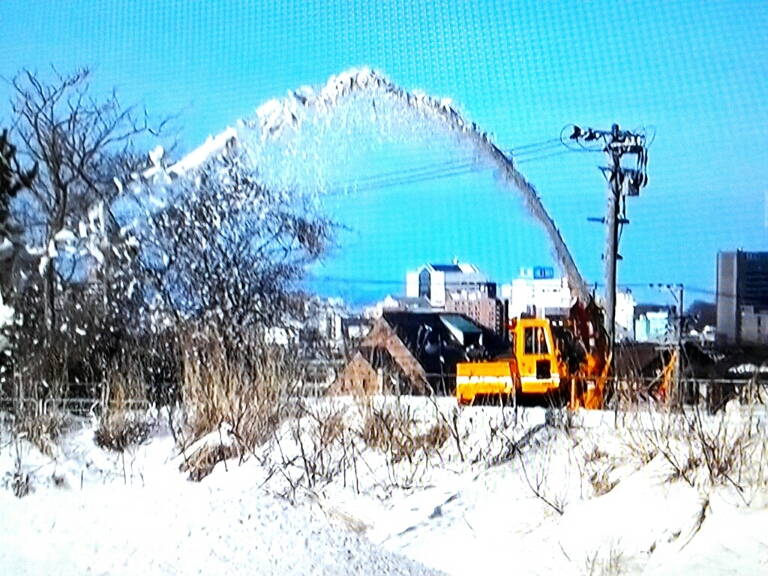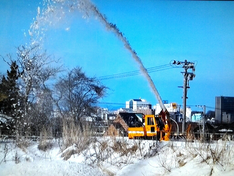■ 実は毎年!このロータリー排雪車(写真)の・・・来るのを待ちわびているのです。 この機械が来ると、間もなく!周辺除雪の・・雪の山が、数珠繋(じゅずつなぎ)ぎのトラックに積まれて来るのです。 私は、この作業を見るのが好きなんです。 後ろ向きのダンプカーが、低速走りながら雪を滑らす!・・間髪を入れず、ロータリー車が!それに突っ込む・・・ 半円を描く雪は!高さ50メートル、飛距離はそれを越えて華々しい!・・・。■ それらに伴い、そう!私にも特技があるのです・・・ この作業を!ホームビデオ・ソニー「3D 」デジタルハイビジョン・ブルーレイデスクに撮って置くのです・・・ やがてそれを!「酷暑の候」に、ビールを飲みながら・・観賞するのであります(笑)。 もしも、敢えてビール持参の上!ご来宅、ご同席のお申し出があるとしたら!・・・ 義によって!拒む理由はありません・・・(笑)。 健康一筋39年。 お!茶しま専科健康通販倶楽部を応援しています。 http://ww w.rakuten.co.jp/daiichi/