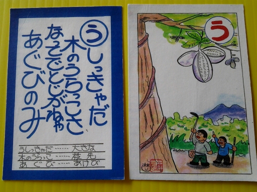 ■ この世!三四半世紀前に誕生した・・・私としては、大石さんの描く「昭和の暮らし」・・・ 涙と笑い!無くして語れない・・ドラマのエンドレスでありました・・・。 私のこの時代!・・昭和18年から25年の頃・・。 最初のころ、この作品に出会ったころ!自分のことを、これまでにっ・・と思ったものでした。■ 今日の「秋田弁かるた」は・・・ うすっきゃだ・・・大きな 木のうらっこ・・・枝先 あぐび ・・・あけび 今の、私の子ども!孫たちには・・まったく理解はできません(笑)。 健康一筋39年。 お!茶しま専科健康通販倶楽部を応援しています。 http://ww w.rakuten.co.jp/daiichi/