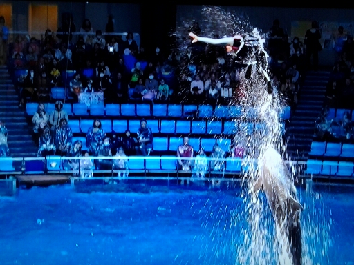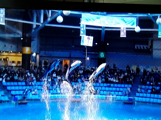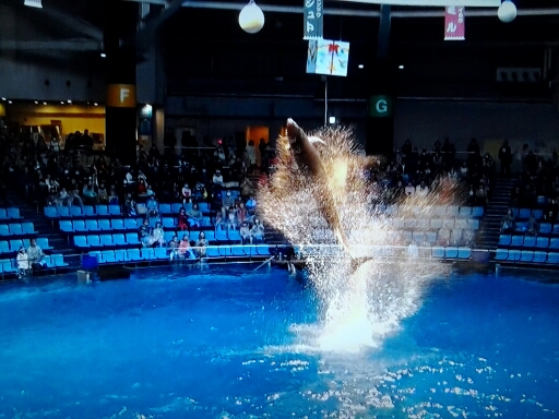 ■ 直径50メートル以上もある!円形プール・・・それを取り囲む、10段近い観覧席・・ 最初のころ、東京のど真ん中に!なぜこんなにまでも大きな海が・・と思ったものだった。 それが!写真の・・・ 「エプソン品川アクアスタジアム」です。 数年前から、年に一度は!人間の努力と・・・イルカの英知の「極(きわ)まり」を、この目で見たくて!・・・。■ 円に東西南北(?)、4拠点!に各担当者・・・ プール内には、10頭を越えるイルカ遊泳・・ 号令一発!自由遊泳が瞬時に、4分割!拠点へ集合・・ 間髪を入れず・・寸分の違いもない「ハイジャンプ」の連続離れ業!・・・ やらせるものの忍耐力!やるものの集中力!・・は、少しはわかる・・・ しかし、あの水面に「一糸乱れず」飛び出る!瞬時のタイミング・・空中高さと姿勢・・・ この部分については、イルカ100%の努力、英知と思いたいのですが!・・ダメでしょうか?・・・(笑)。 健康一筋39年。 お!茶しま専科健康通販倶楽部を応援しています。 http://ww w.rakuten.co.jp/daiichi/