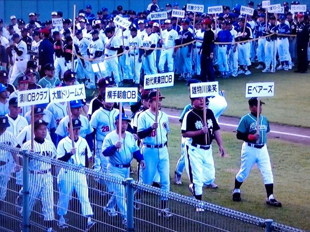 ■ 「情熱傾け!はつらつと・・・」(4) 一発勝負のトーナメント戦。 今年はどんなドラマや好プレー、珍プレーが生まれるのか。 初日の19日は、午前7時から神岡野球場での開会式!・・・ 例年!壮大厳粛な中、昔野球少年の毅然とした立ち振舞いの目立つ儀式・・・ 今年は、大曲クラブチーム主将の「選手宣誓」で、その戦いの火蓋が切られる・・。■ 開会式終了後、大仙市と友好交流都市協定を結ぶ、神奈川県座間市の「選抜チーム」と、開幕戦としてエキシビションを行う。 写真は、開会式の選手4700名と共に!堂々の行進を見せてくれた・・・ 神奈川県「座間市選抜チーム」です。■ "Passion devotion! Lively... " (4) Tournament competition of an one shot deal. What kind of drama, wonderful play and bloopers are born this year? The 19th of first day, from 7:00am, the opening ceremony at Kamioka stadium!.. Ordinary year! The ceremony for which the leaving behavior a baseball boy made resolute before is conspicuous while soudai is solemn... Firing of the war is cut with "pledge for fair play" of Omagari club team captain this year...■ An exhibition is performed as an opening game with "selection team" in Zama-shi, Kanagawa where a friendship exchange city agreement is concluded with a supreme legendary wizard city after the opening ceremony. 健康一筋 お!茶しま専科健康通販倶楽部を応援しています。 http://ww w.rakuten.co.jp/daiichi/