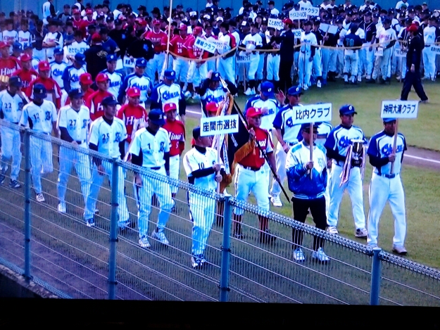 ■ 「参加184チーム・5日間の戦い」(5) 栄冠を勝ち取った優勝チームには、魁星旗と魁杯、県野球協会優勝盾などに加え・・・ 後援の文部科学省より、文化科学大臣杯と賞状が贈られるのです。■ 「少年野球発祥の地」神岡町(現大仙市)で、少年野球の振興に尽くした故人、佐々木氏寄贈の「佐々木杯」授与もあります。 開会式の最中!重大ご披露がありました・・・ ななな何と!今回から新に・・・ 「内閣総理大臣杯」が追加されたのです。 後日の当ブログにても、ご紹介したいと思っています。■ 今日の写真は、威風堂々?の入場行進をする(大笑)!我が「E・ベアーズ」(右端)の勇姿であります。 実戦ではなかなか勝てませんが!入場行進の「格好(かっこう)良さ」に勝利をかけているのです(笑)・・・。■ "184 teams of participation and a war for 5 days" (5) In the winning team which won a garland, in addition to the lead stellar flag, the lead cup and a prefecture baseball society victory shield... A cultural science minister cup and a certificate paper are presented more than the Ministry of Education, Culture, Sports, Science and Technology of support.The people who passed away who devoted themselves to promotion of a little league and Mr. Sasaki also have "Saza, wooden cup" giving of contribution in■ "place by the little league origination" Kamioka-machi (present supreme legendary wizard city). While it's the opening ceremony! There was important show.... With what which is NA where it's so! From this time, in a record... "The Prime Minister cup" but it was added. I'd like also to introduce in a later our blog. 健康一筋 お!茶しま専科健康通販倶楽部を応援しています。 http://ww w.rakuten.co.jp/daiichi/