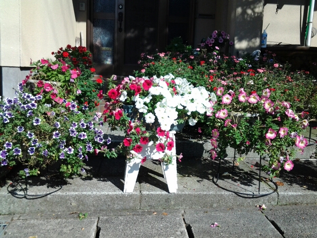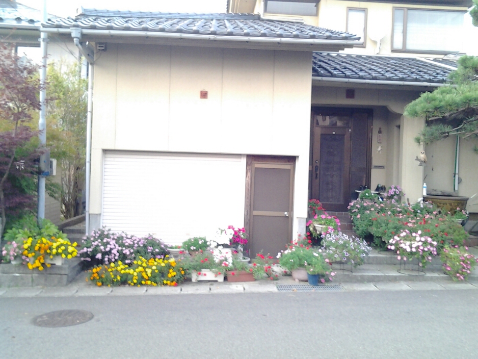 ■ まだ10月中旬というのに、なぜか街中の「玄関飾り」の小花壇、「お花飾り」の不足が気になります。 私の体感からも、今年の異常気象!気候の変動は、耐え難く・・もうやめよう、あとやめようの決断を迫られましたァ・・・。 その挫(くじ)けそうな心を、叱咤激励し続けていただいたのが!愛犬散歩の近所の方々・・・。 私の前の通りが通学路、小学生たちだろうか!会話をやめ、お花を見てはにっこり微笑み・・先を急ぐ! ある時などは!見たことのないご婦人が、憮然(ぶぜん)とした顔で!私にこう訴えるのです・・・ここを通るのは!遠い回り道なんです・・・ でも毎日一目、この「お花」を見なけれが!気分が勝れないのです・・(笑)と。 そんなこど!しゃべられでも、わだしにも・・私のえろえろ都合がありまして、今年のように5日も連続雨なし・・・ 好きな旅行、外出もまま成らず・・花との会話で!気を紛らしているんだすよ・・・(笑)。 写真、現在(10/20)の玄関前です。■ I'm interested in a small flower bed of "front door ornament" and lack of "corsage" downtown for some reason still to say the middle of October. The abnormal weather which is also this year from my sense! A it's difficult to be patient of a fluctuation of the climate.., and where to stop has already pressed for decision after stopping.... I'll put out the za (the lot), that I kept exhorting a heart! Person in neighborhood of the pet dog walk.... Are streets in front of me a school route and schoolchildren! Since stopping conversation and seeing a flower, I leave in haste with a pleasant smile! At some time! The woman who doesn't have a seen thing, disappointed by the face made (BUZEN)! I appeal to me so..., to pass here! A far circuit.... But see a look and this "flower" every day, you can kick, but! Feeling isn't outstanding.., (warai). Such KODO! It's talked and but is WA, I'm also to do.., get it, get it, there is convenience, and, it also continues for 5 days like this year,* without rain.. A condition won't be also favorite travel and going out, and it's by conversation with a* flower! I find solace, and, IRUNSUYO,* and (warai). It's in front of the front door of the picture and present (10/20). 健康一筋 お!茶しま専科健康通販倶楽部を応援しています。 http://ww w.rakuten.co.jp/daiichi/