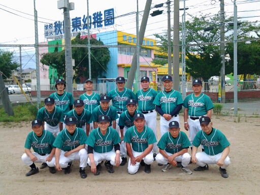 ■ 「全県500歳野球」の項は少し長くなりましたが、今回で一先ず終ります。 と言うのは、私は野球が全てなのです「野球」をしながら!食べ、遊び成長してきました・・・! 7歳の時にはすでに、畔(くろ)を区切りに!稲株の残る田圃(たんぼ)の三角ベース・・・ そのピッチャースプレートに立っていたのです。■ あれから70年、太平洋戦争敗戦70年のニュースは多く聞きますが、私の話題はありません(笑)。 私の生涯、三四半世紀プラス1(ワン)の最大の欠点は「我が儘(わがまま)」であったことです。 「我が儘」の原因2つ・・・! その一、幼少時の極度な「偏食」 (10才頃に、シベリア抑留から帰還の親父の雷で奇しくも改善) その二、雷親父の反動か、70年間!ピッチャーのポジション以外についたことがないのです。■ 今ここに来て!そんな私を暖かく励ましてくれる・・・親愛なるメンバーをご紹介します。 写真 吉田広志監督率いる「E・ベアーズ」です。 若手50歳の選手から!尚、四半世紀を旅した私までのチームは多彩です!・・・(笑)。■ An item of "the whole prefecture 500 year old baseball" became a little long. Baseball is everything for me for saying so, while playing "baseball"! I ate and it was being idle and was growing...! To divide a ridge (It's reeled.) already at 7 years old! Triangle base in the rice paddy where rice plant hill is left (rice paddy)... I stood as the beep plate of chards.■ From that it's full of news of the Pacific War loss for 70 years in 70, and it's heard, but I don't have my topic (warai). The fault that three four half a century plus 1 (one) is biggest my lifetime is that I came "selfish, (selfishly)". 2 of cause of "selfishness"...! Extreme "unbalanced diet" of its one and the time of infancy (It's improved strangely by father's thunder of return from Siberia detainment for around 10 years old.) Its two, reaction of my thunder father or 70 years! I have not arrived at any place but pitcher's position.■ Please come here now! I'll introduce the dear member who encourages such me warmly.... Picture The E "and" the bears Yoshida Hiroshi director leads. From a player of the 50 years old of young people! Further, the team to me who traveled a quarter of a century is colorful!... (warai). 健康一筋 お!茶しま専科健康通販倶楽部を応援しています。 http://ww w.rakuten.co.jp/daiichi/