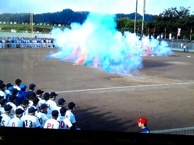 ■ 「500歳野球発祥の地から!全国大会へ」(8) 高齢者の楽しめる!ユニークなルールは、500歳野球ならではのものなのです。 ほかにも年齢を考慮し、マウンドと本塁の間は16メートル、塁間は23メートルで、学童野球と同じ距離・・・。■ 一度ベンチに退いた選手が、再び出ることもできる。 55歳までの投手は、計9アウトを取るまでに投球が制限されているのです。 ちなみに!マウンドと本塁の距離・・・ 500歳ルール 16、00m 一般野球企画 18、44m 私は両方をやっているのですが、それがなかなか難しい・・・ 16m が距離が近くていいじゃないか!と言われますが、近くて駄目なんです(笑)。 変化球が変化しないうちに、キャッチャーミットに届くのです。 まるっきり投げ方が違うのです(笑)。 ■ 写真、本場「花火の町」・・《大曲》ならではの、開会宣言!勇壮豪華な「昼花火」・・・。■ "From the place which is baseball origination 500 years old! To national tournament" (8) A senior citizen's, you can enjoy yourself! A unique rule is the one baseball 500 years old. Besides 16 meters of fort time also considers the age and it's 23 meters between the mound and the stronghold, the same distance as schoolchild baseball....■ The player who left can go out to a bench again once. A pitch is restricted before a pitcher up to 55 years old gets total of 9 outs. By the way! The distance between the mound and the stronghold... 16 or 00 m of 500 year old rule 18 or 44 m of general baseball plan I'm doing both of them, that's quite difficult.... 16m, may not the distance be close! You say so, but it's close and useless (warai). While a shoot doesn't change, it reaches a catcher's mitt. How to throw is different at all (warai). 健康一筋 お!茶しま専科健康通販倶楽部を応援しています。 http://ww w.rakuten.co.jp/daiichi/