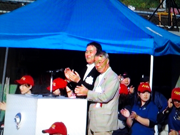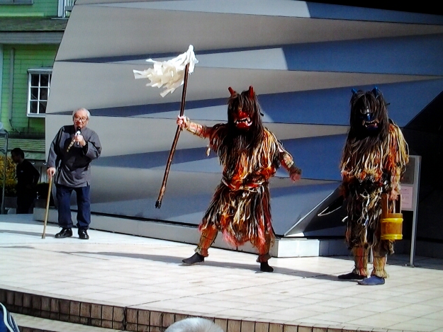 ■ 「秋田かやき」を思う存分!・・・(5) この日の会場の盛り上がりは、屋台に出店した「飲食店」の皆さんの努力と・・・ ステージイベントにかけた主催事務局の、狙いと意志・・この両者の相乗効果が、神様に伝わり・・季節外れの好天をもたらす。 私は、2日間朝から夕方まで、フルタイムでビデオ撮影に明け暮れ・・ 主に、ステージイベント (デジタルハイビジョン・ブルーレイ) (デジタルズーム120)■ 今日のステージイベント・・・ 写真上は! 「秋田なまはげ」・・2匹登場 なまはげ登場は、「泣く子えねぇが」、「騒ぐ子えねぇが」・・とボリュウムアップの大音響と共に、屋台の方から現れる!。 あのおっかねェ顔で、バガ声だして!顔寄せ、子供が半狂乱!わぁ泣かせておえで・・泣く子えねぇがっだってょ・・・(笑)。 写真下は! 「秋田民謡 キッズ」・・・ 民謡王国!あきた、子どもからお年寄りまで、民謡を愛し、民謡に親しんでおられる愛好者の数・・日本一では!。 このステージ!全員歌唱・・・見事な声、見事な節回し!これからも「民謡日本一」が、バンバン出るやも知れません!・・・(笑)。■ I think of "Akita or baking", it's full!... (5) Effort and* of everyone of "restaurant" who opened protuberance in a meeting place on this day in a street stall.. An aim of the sponsorship secretariat which bet on a stage event, will and both* this synergistic effects are transmitted to God and bring* unseasonable good weather. I devote myself to videotaping full-time from a morning to nightfall for 2 days... Mainly, stage event (Digital Hi-Vision blue leu) (Digital zoom 120)■ Today's stage event... One on the picture! "Akita Namahage"** 2 appearance "The child who cries doesn't get it, but." "The child who makes noise doesn't get it." Namahage appearance shows from a way to the street stall with* and the blare of BORYUUMUAPPU! That O, please raise a BAGA cry by a E face! Facial movement and a child are frantic! GADDATTEYO,* and (warai) WAA makes them cry, and the child who cries with finishing doesn't get. One under the picture! "Akita folk song Kids"... Folk song kingdom! By numerical.. Japanese best of the fan who is loving a folk song from the child who got tired to elderly and is enjoying a folk song! This stage! Song of all the members..., excellent voice and excellent tune! "Folk song Japanese best" won't be also known to YA where a bonbon goes out now!... (warai). 健康一筋 お!茶しま専科健康通販倶楽部を応援しています。 http://ww w.rakuten.co.jp/daiichi/