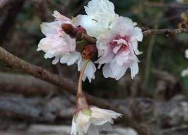 そんなある日 散歩の途中で 寒桜でしょうか? 何輪かが 咲いていました・・