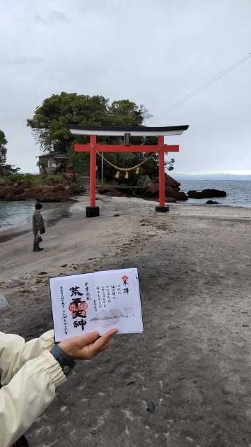 県道68号線沿いにある海に突き出た島のような岩山上(天神島)に神社が建立されている風光明媚な場所です。