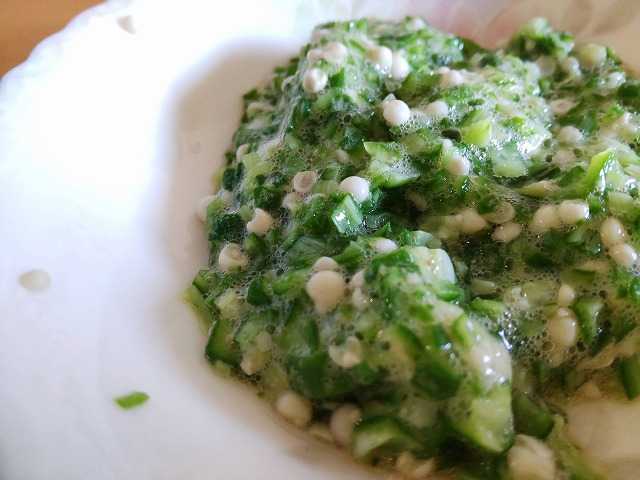 ゆでおくらを 細かく叩いて ポン酢で頂きます。。。