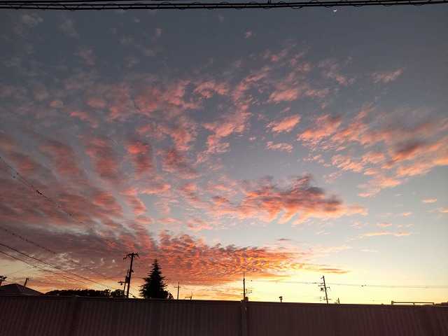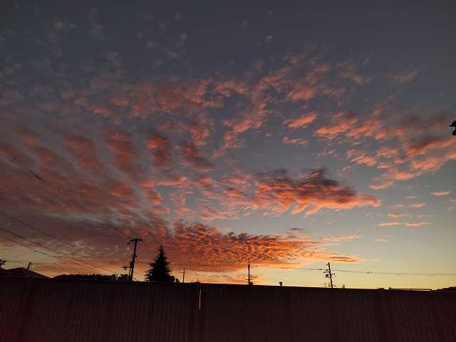 早朝散歩の途中で 空を見上げると 鮮やかな色合いで 暫し 歩くのをやめて 写真タイム。。