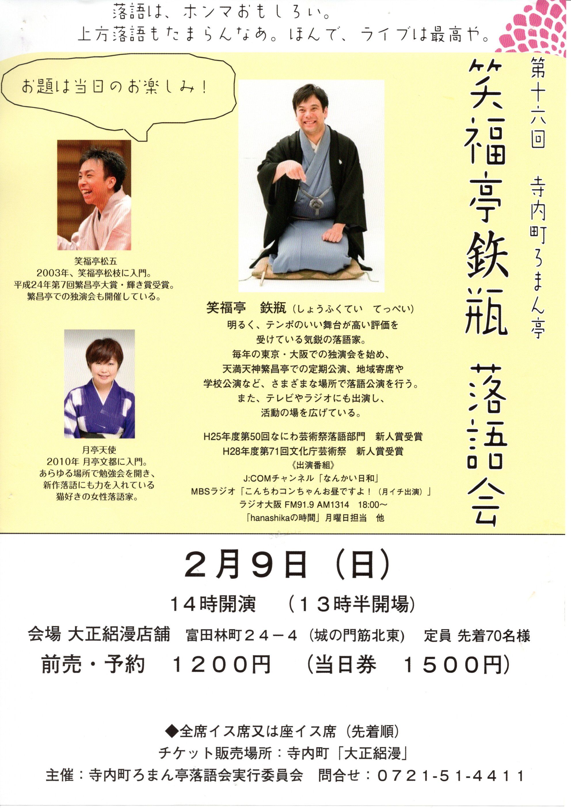 2月9日は、寺内町「落語会」の日。すでに満席に・・・