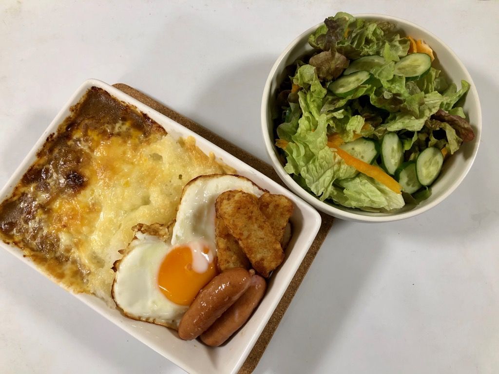 ★ ラザニア皿で『焼きカレー』 ★トッピングは目玉焼き・ウインナー・ハッシュドポテト今日もいつもの時間に実家へ”GO!”キャロママは会食サービスから帰ってきていていましたキャロママは以前から歯茎が痛いって困っていてこの前ケアマネさんが〈訪問歯科〉と言うサービスがある事を教えてくれて今日電話で予約しました〈訪問歯科〉とは・・・通院が困難な患者さんに対して家まで来てくれて歯科診療(口腔ケアなど)を行う(医療保険と介護保険を使う)キャロママも安心したようでよかったわいつもの時間に実家を出て・・・今日はひとりでの夕食なので恒例の手抜き料理~~~(笑)ラザニア皿で『焼きカレー』作って目玉焼き・ウインナー・ハッシュドポテトをトッピング~~~♪↑の「ハッシュドポテト」は最近お気に入りなの冷凍食品でフィンガータイプの小さな「ハッシュドポテト」が十数個入っていてオーブントースターで焼くと出来上がり今回は『焼きカレー』と一緒にオーブンで焼きました***********ブログランキングに参加中です よろしかったら↓を“ポチッ!”してね♪☆★☆琴&鈴ちゃんニット☆★☆☆★☆ 旅行日記 ☆★☆☆★☆ お散歩日記 ☆★☆